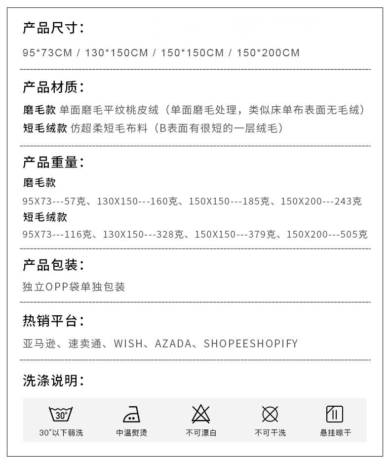 Felpa corta 95X73---120g, 130X150---345g, 150X150---390g, 150X200---515g (sin incluir 14g (bolsa opp + accesorios))