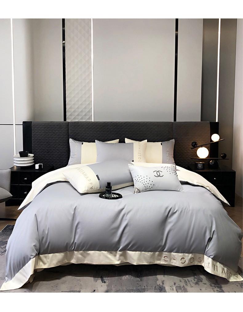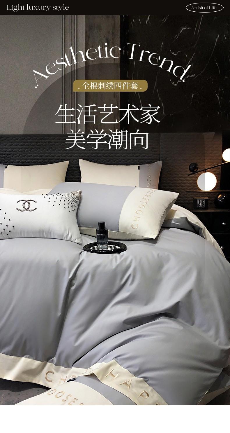 Sencillo de Alta Gama Bordado de Algodón Puro Color Sólido Juego de Cuatro Piezas Doble Hechizo Juego de 4 Piezas de Cubrecama de Algodón Puro Juego de 3 Piezas de Sábana y Funda de Edredón
