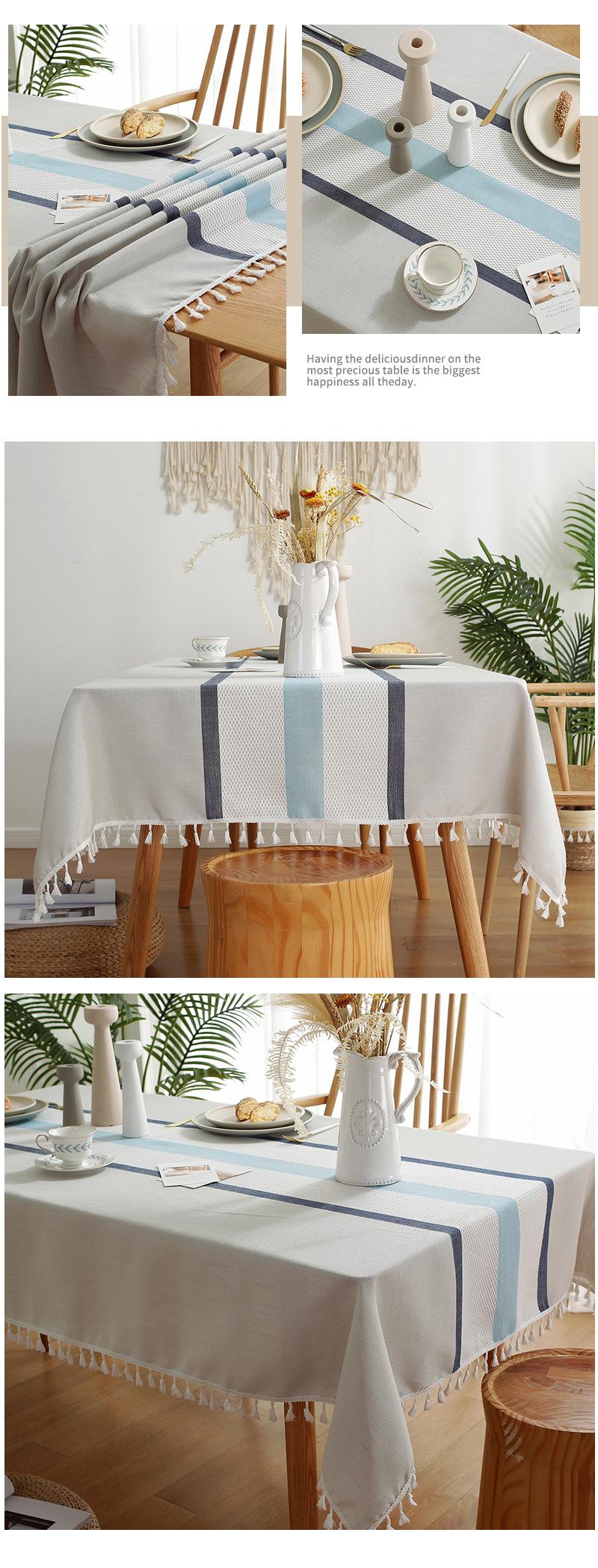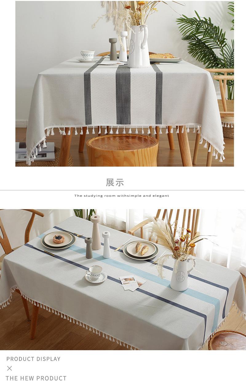 Mantel de malla de estilo europeo, mantel para mesa de centro, mantel de algodón y lino para el hogar, mantel rectangular simple con rayas simétricas, mantel para comedor