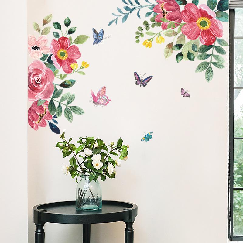 Compra FX-D269 - Adhesivo decorativo para pared, diseño de peonía rosa y mariposa, para dormitorio, entrada, hogar, autoadhesivo al por mayor en Joom.pro