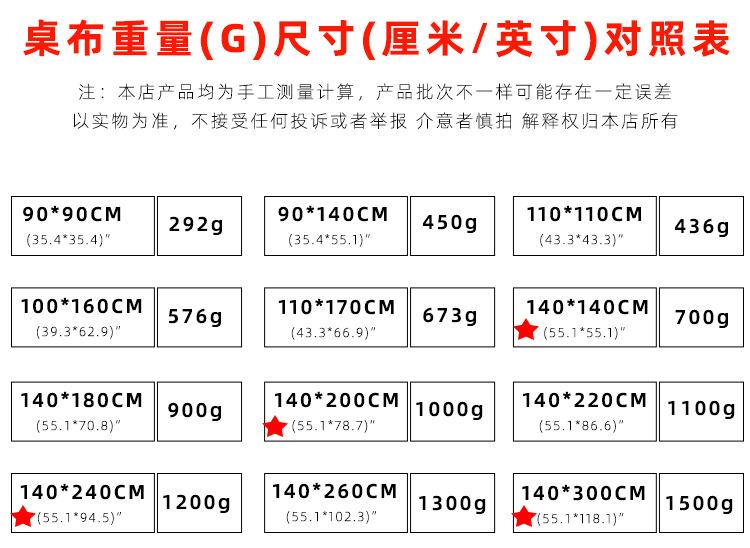 90*90cm, 90*140cm, 110*110cm, 140*140cm, 100*160cm, 110*170cm, 140*180cm, 140*200cm, 140*220cm, 140*240cm, 140*260cm, 140*300cm