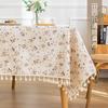 | Mantel de algodón de color liso que combina con todo, con volantes plisados, rectangular, para mesa de comedor, jardín, restaurante, mantel adecuado |