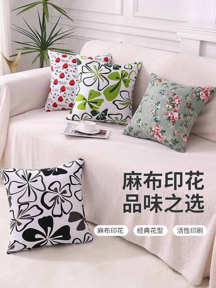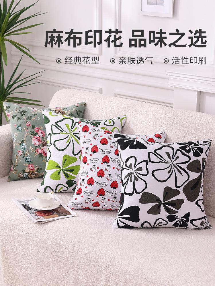 Cojín de sofá con estampado de lino de estilo nórdico, cojín de cintura para oficina, cojín de respaldo para cama, funda de almohada de lino y algodón