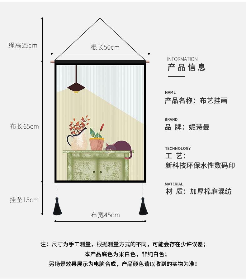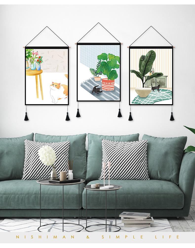 Pintura colgante de tela nórdica ins Viento pintura decorativa sala de estar dormitorio habitación fondo pared tela algodón lino tela colgante una generación de cabello