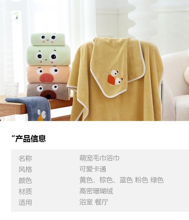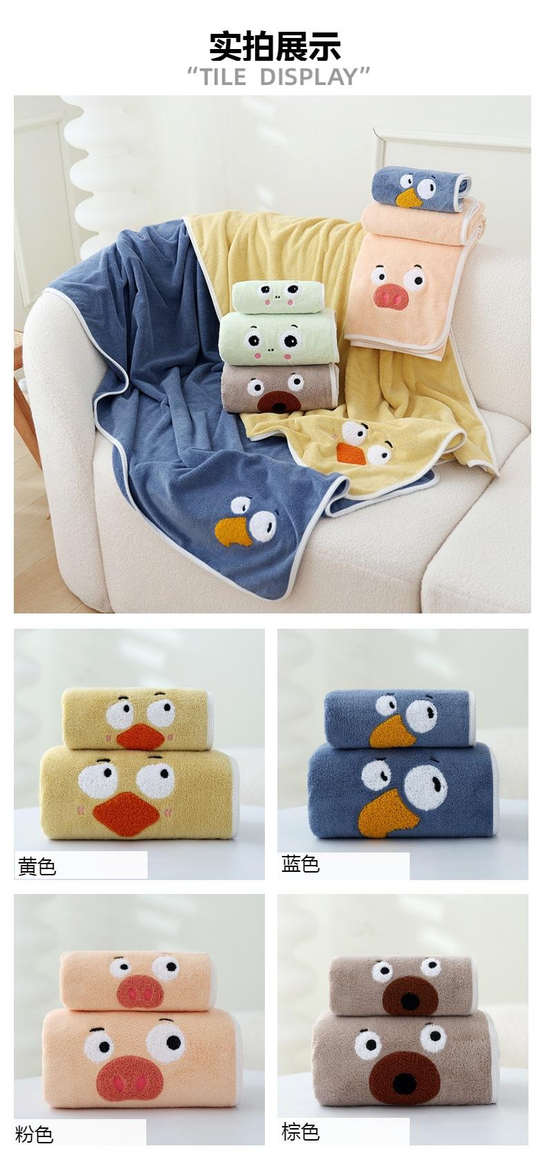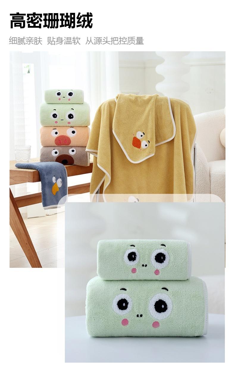 Toalla de baño de lana de coral de alta densidad, nueva de fábrica, con dibujos animados para niños, bonita toalla bordada, gruesa, absorbente y suave.