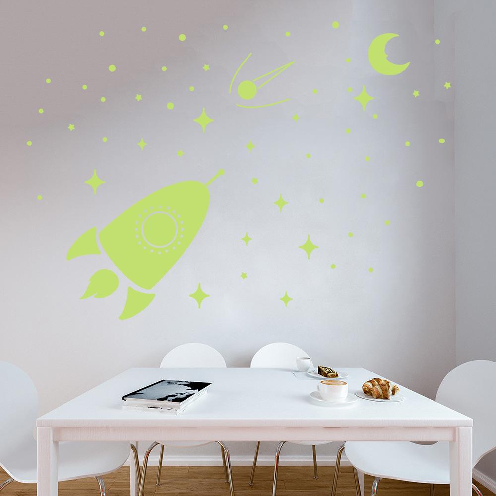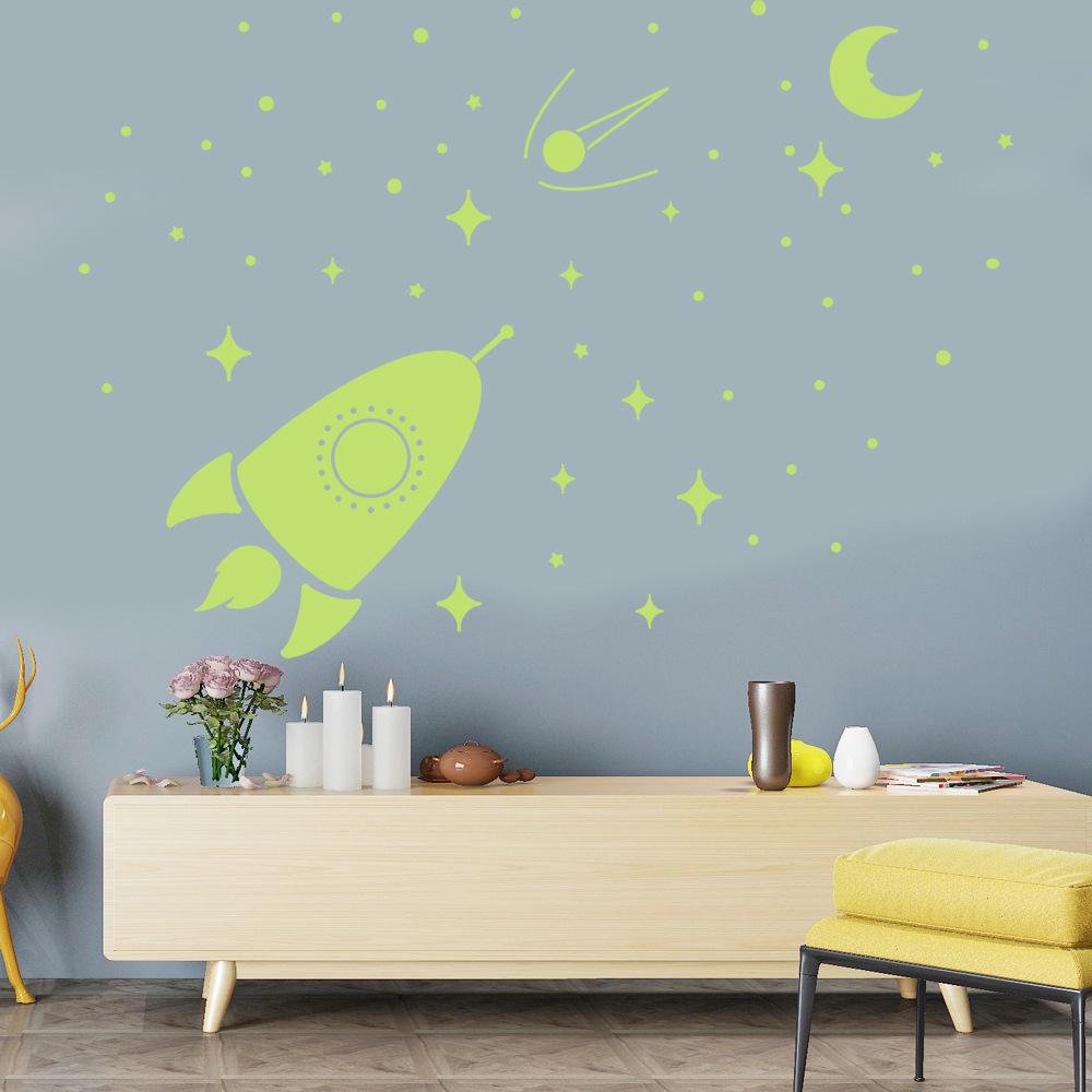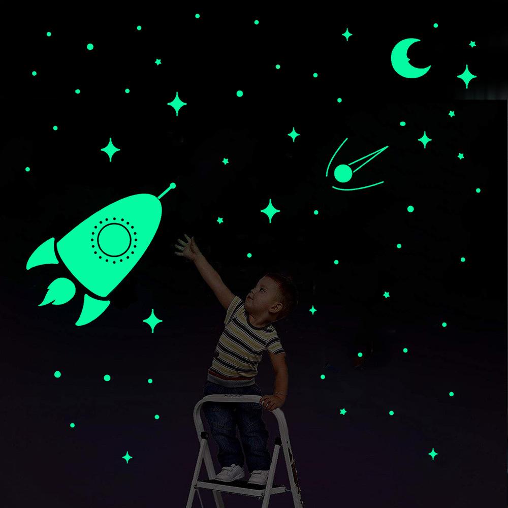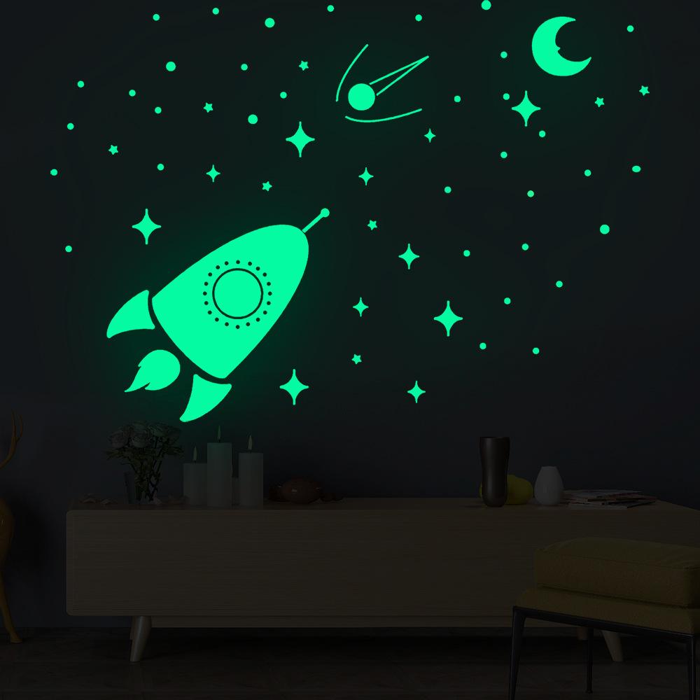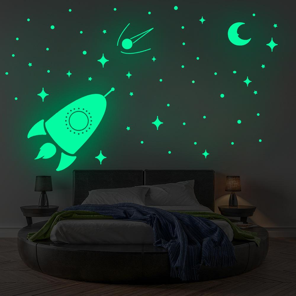Pegatinas de pared con combinación de nave espacial y estrellas luminosas para decoración de pared de dormitorio infantil, pegatinas fluorescentes autoadhesivas luminosas