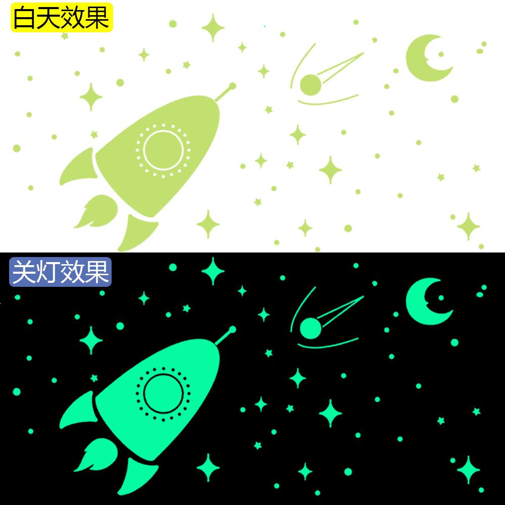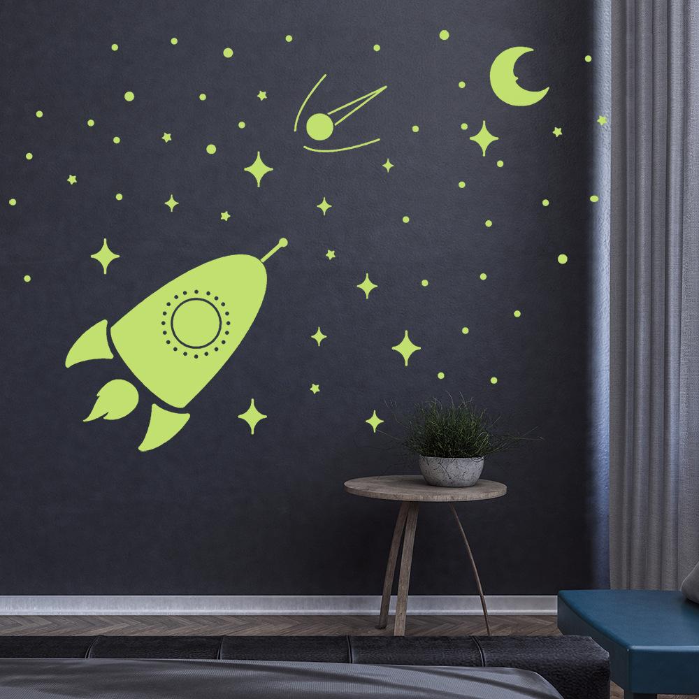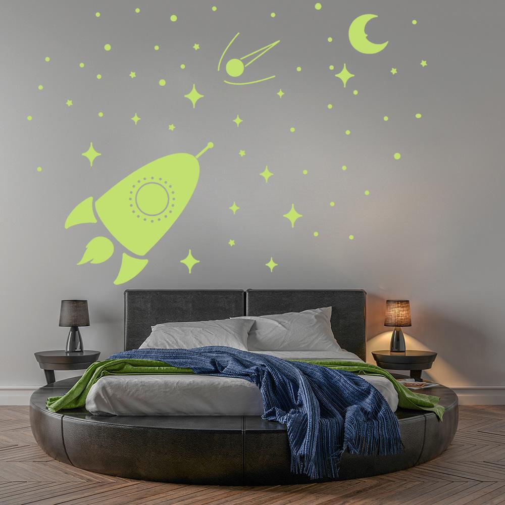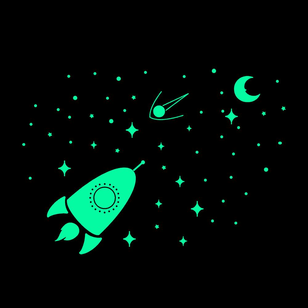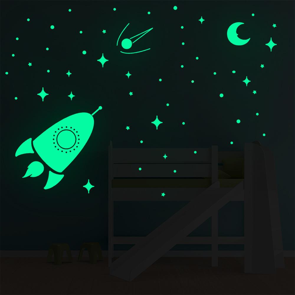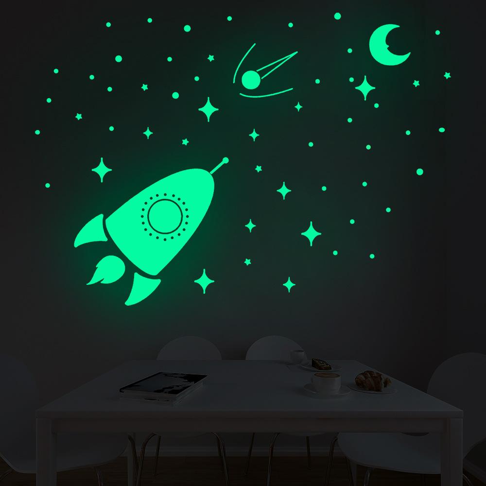 Pegatinas de pared con combinación de nave espacial y estrellas luminosas para decoración de pared de dormitorio infantil, pegatinas fluorescentes autoadhesivas luminosas