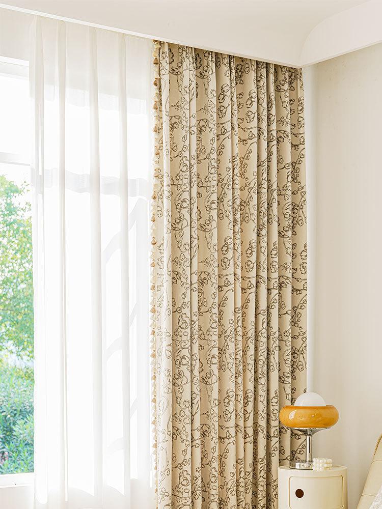 Cortina jacquard de chenilla crema francesa nueva sala de estar dormitorio Shaoxing Keqiao lujo ligero simple cortina de tela terminada