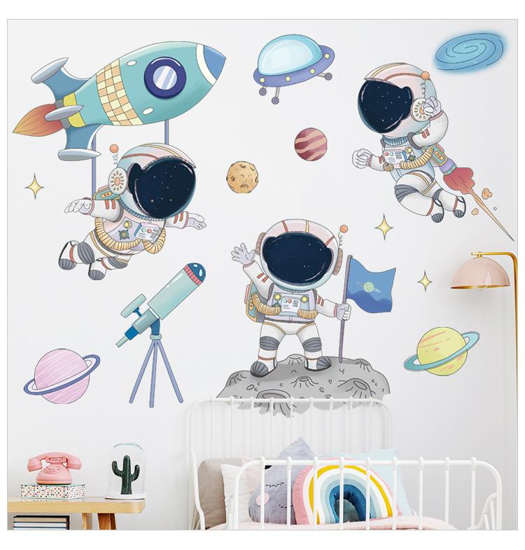 Pegatinas de pared de Amazon espacio pegatinas de piloto aeroespacial dibujos animados pegatinas para habitación infantil decoración de aula de jardín de infancia