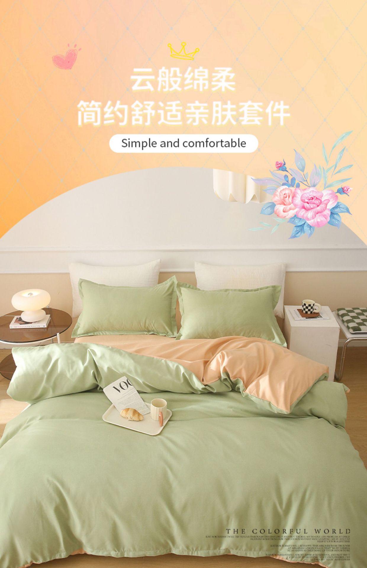 Sábanas de algodón lavadas de cuatro piezas con lijado de color sólido, funda de edredón para cama individual, ropa de cama de tres piezas Princess Wind, venta al por mayor