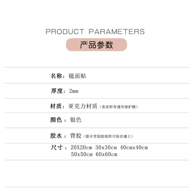 cadaAl vender, los comerciantes deben informar a los clientes de que este es un espejo decorativo, que es principalmente para embellecimiento y no puede lograr el efecto de un espejo de cristal. Cuanto mayor es el grosor, menor es el grado de deformación de la imagen.Por favor, tenga cuidado si tiene requisitos altos.No aceptamos devoluciones ni cambios por ningún motivo. Por favor, no ordene si le importa.. Después de pegar, retire la película protectora de la superficie. El producto terminado es muy brillante, pero no lo toque ni lo frote. ¡El espejo no es resistente al desgaste!