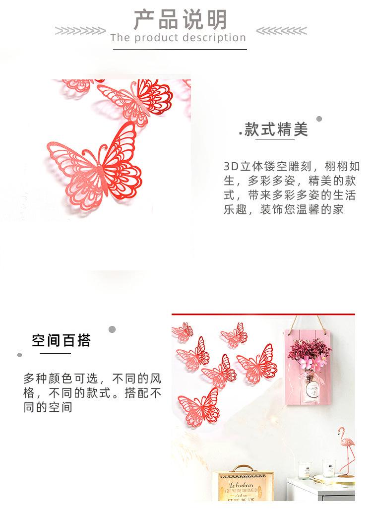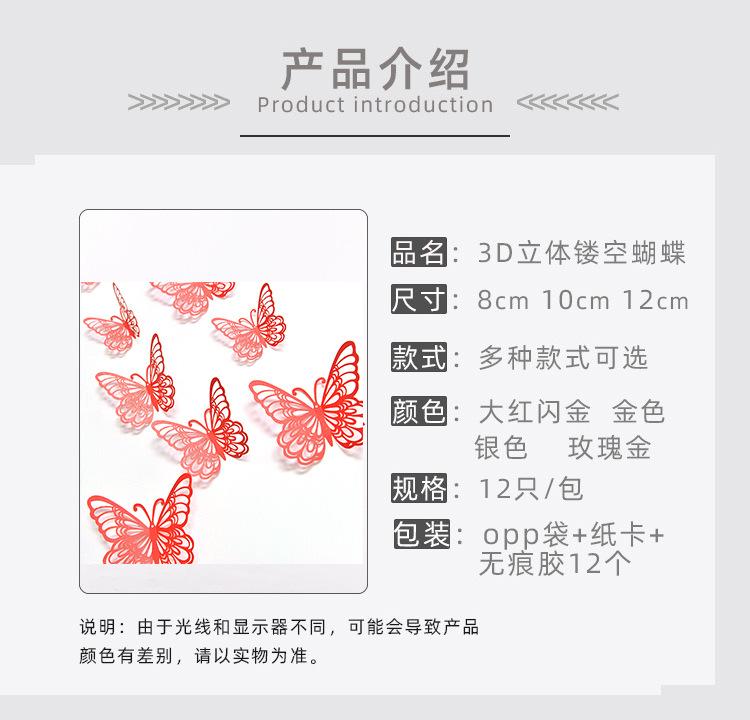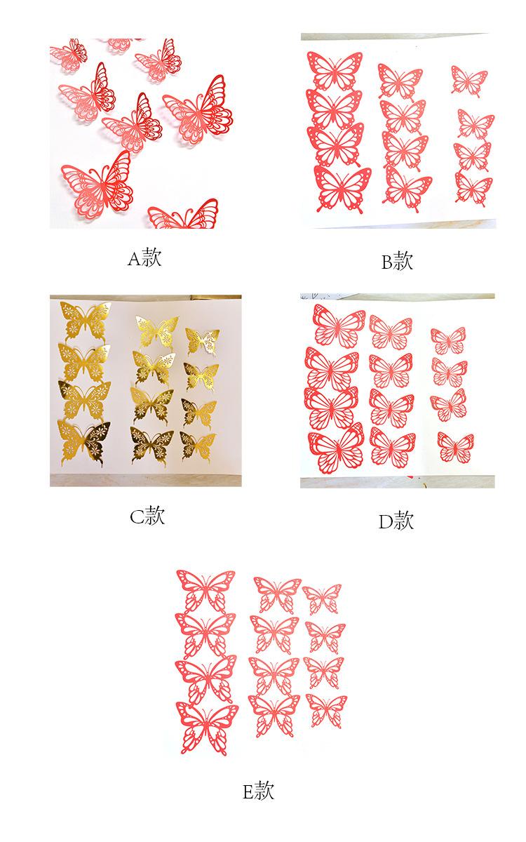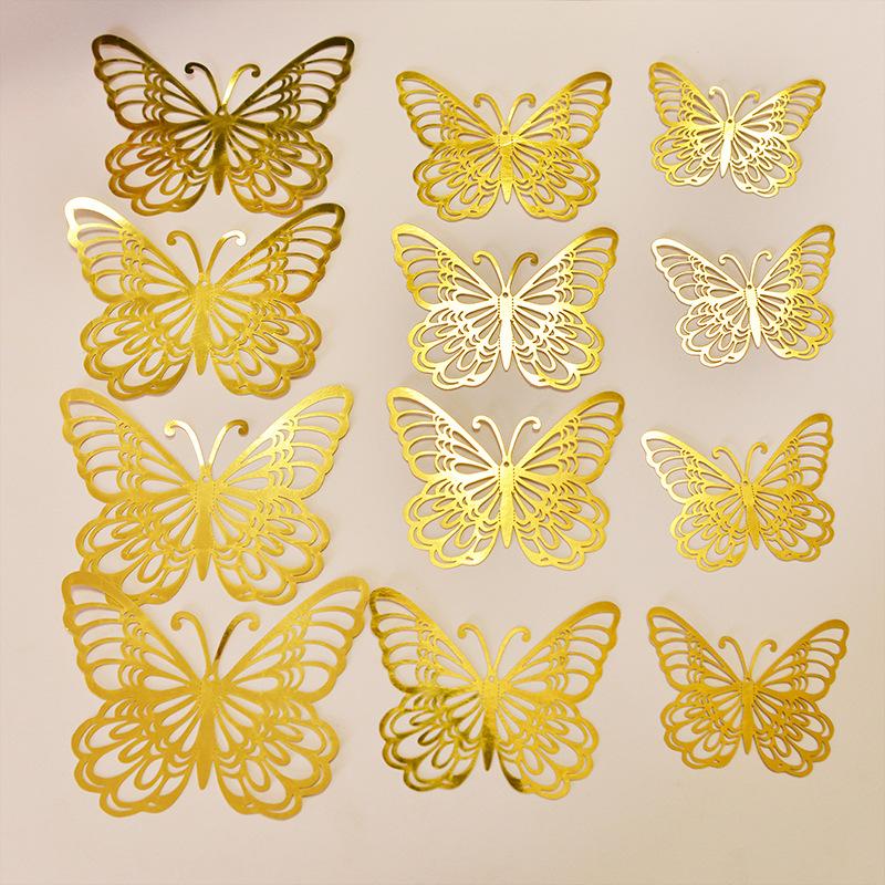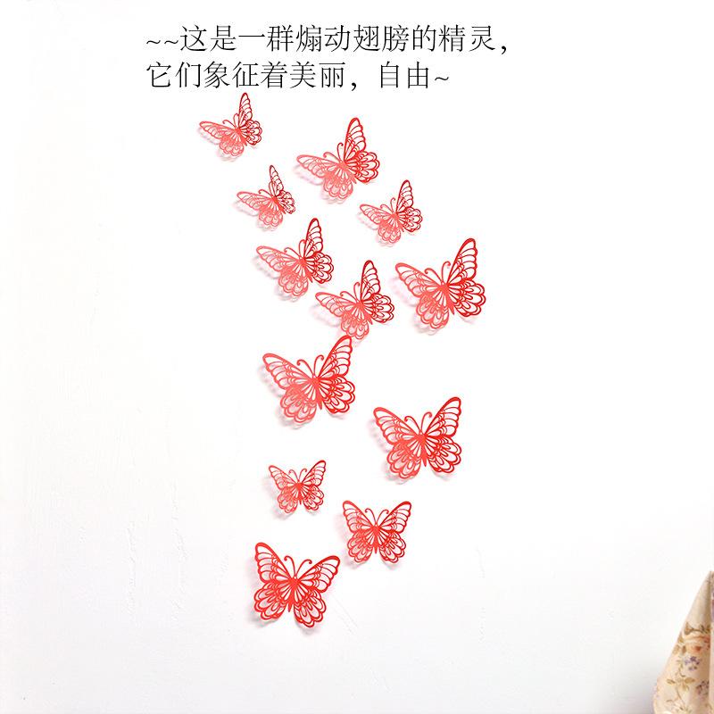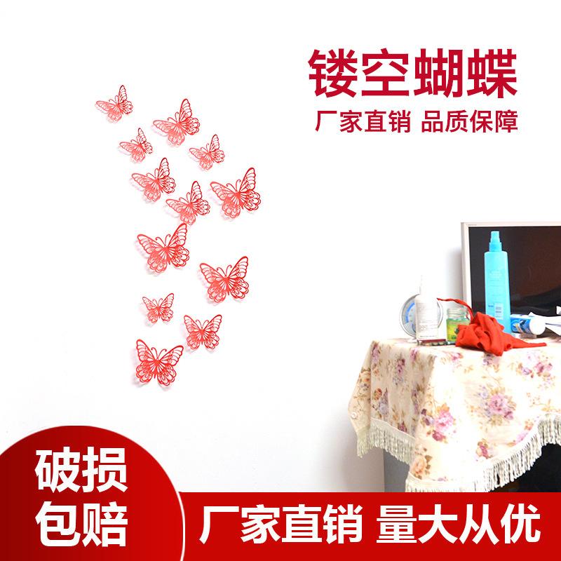 Pegatinas tridimensionales de 12 piezas de color de comercio exterior de mariposa hueca, decoración de pared, pegatinas de pared de fondo, arte para fiesta en casa