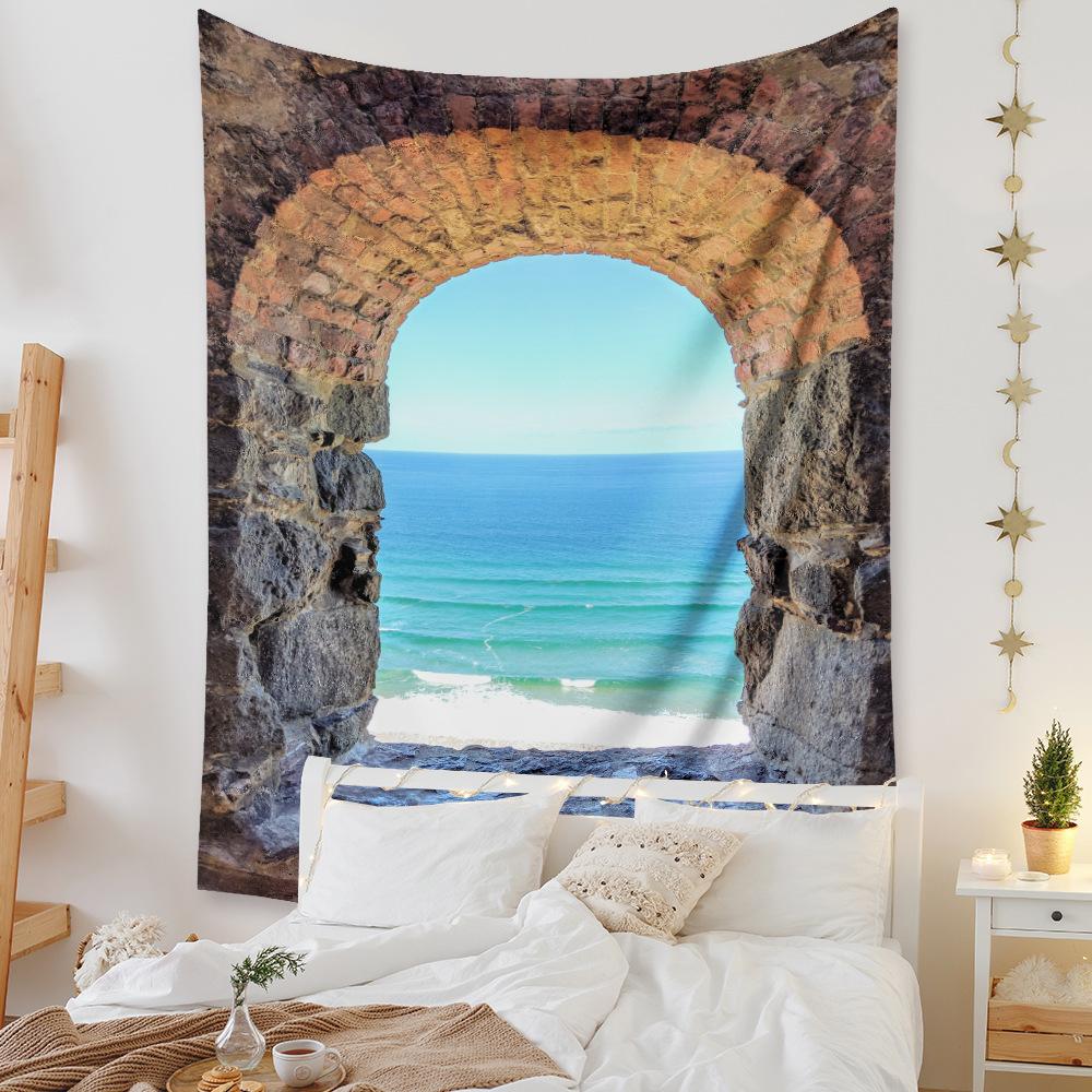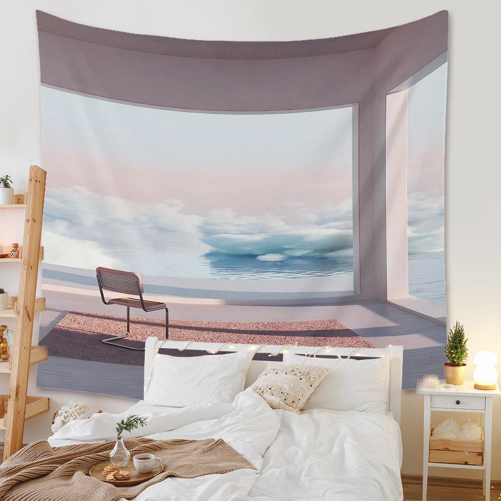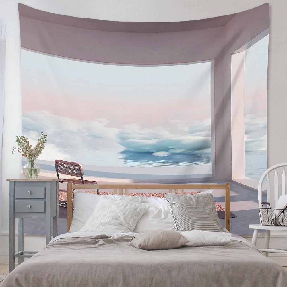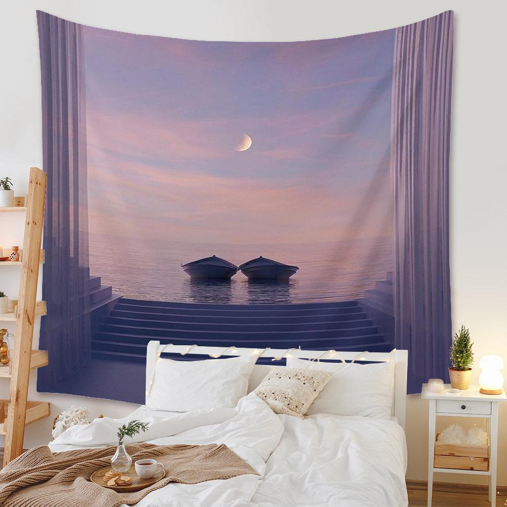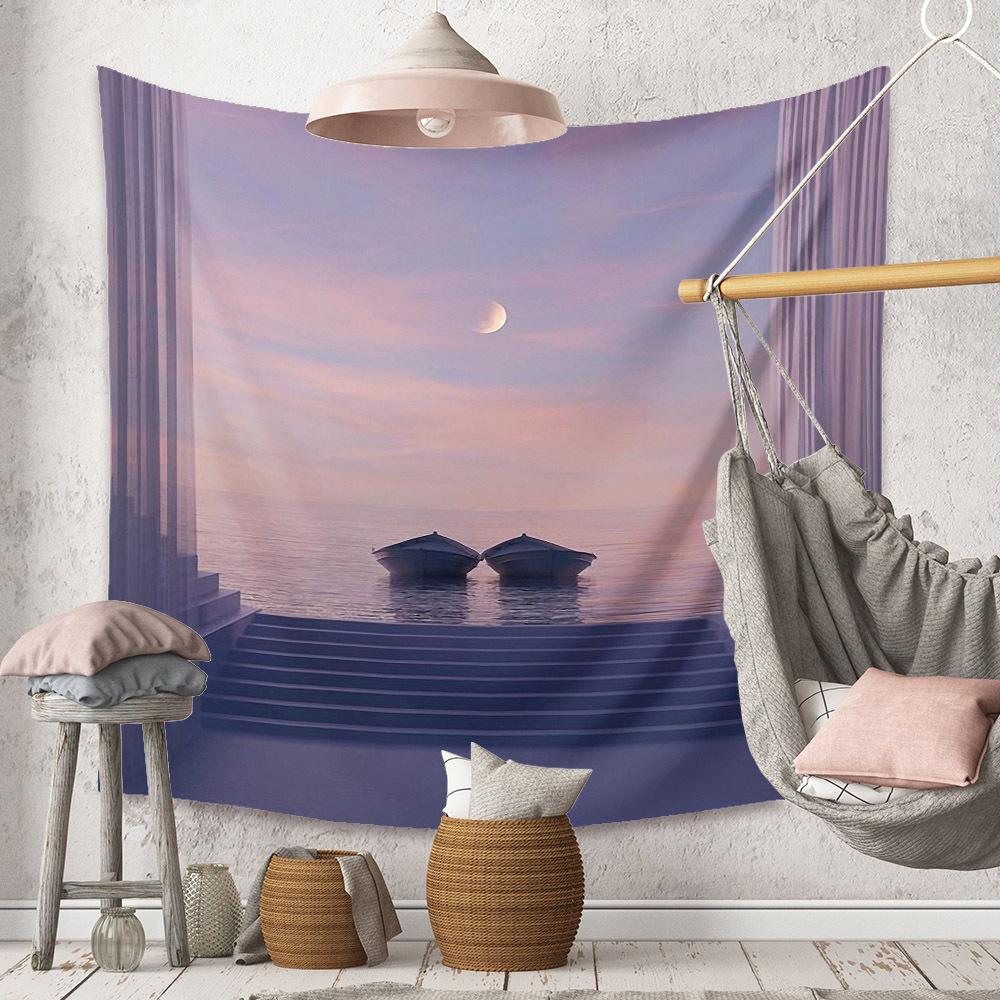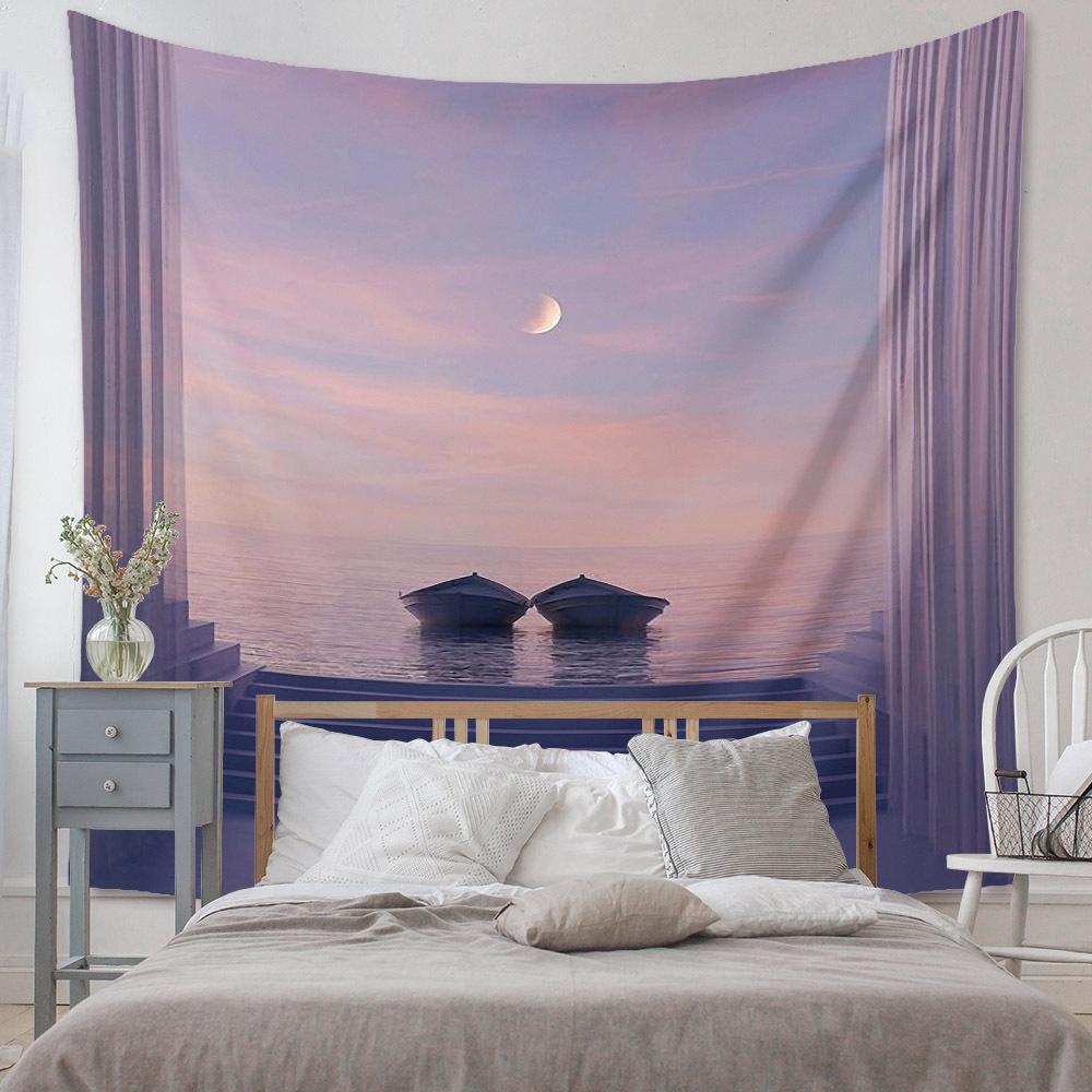 Tapiz transfronterizo para el hogar, tapiz bohemio, decoración de habitación, tela colgante, fondo de tela, tapiz de paisaje con viento.