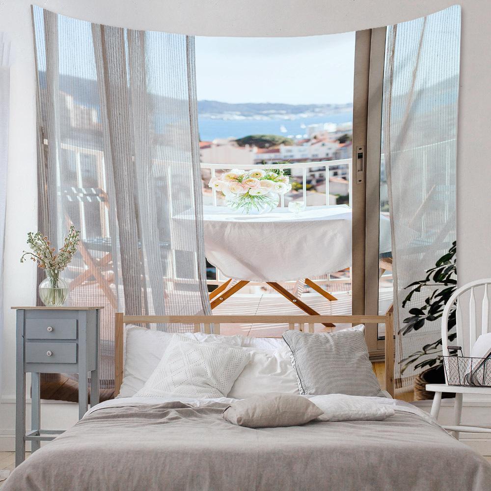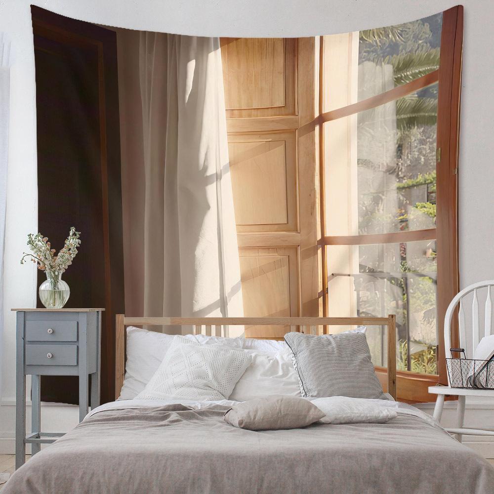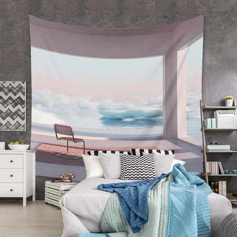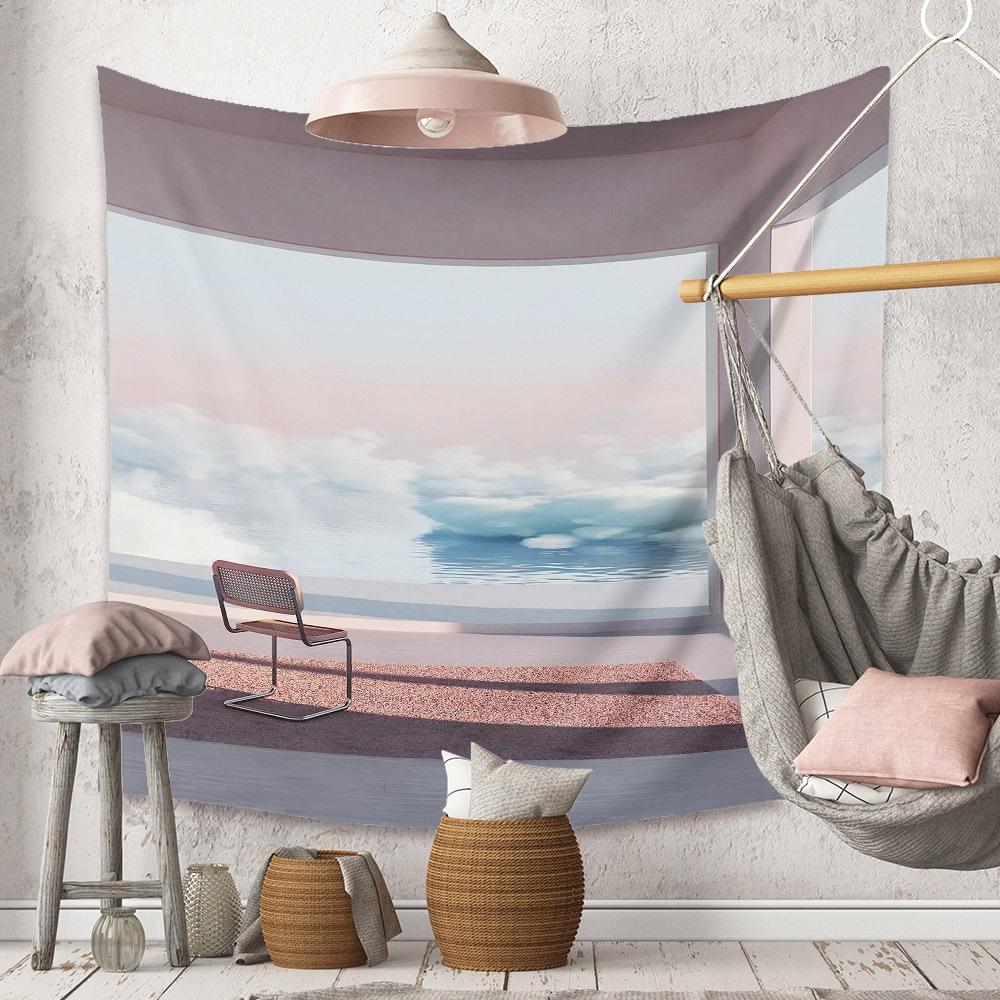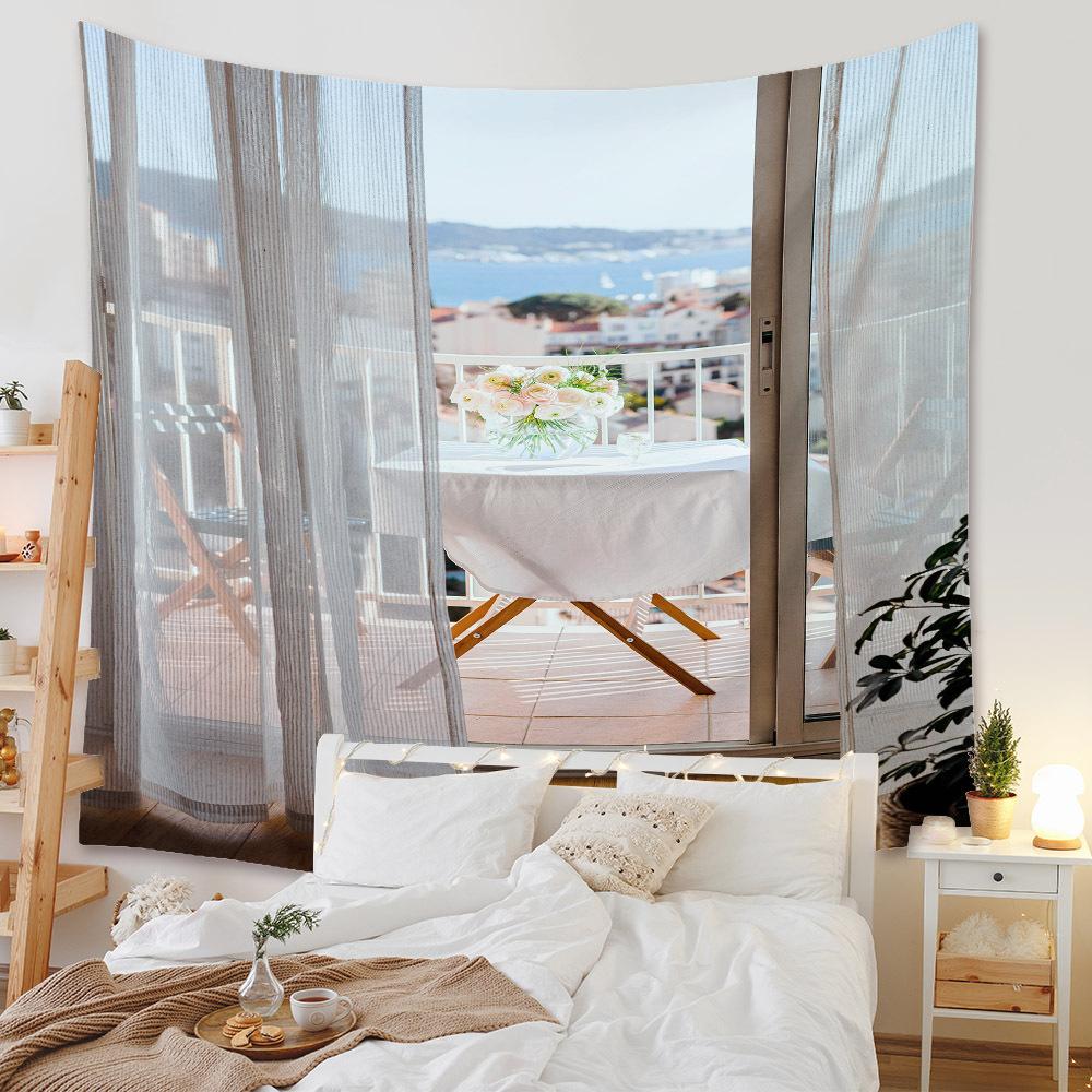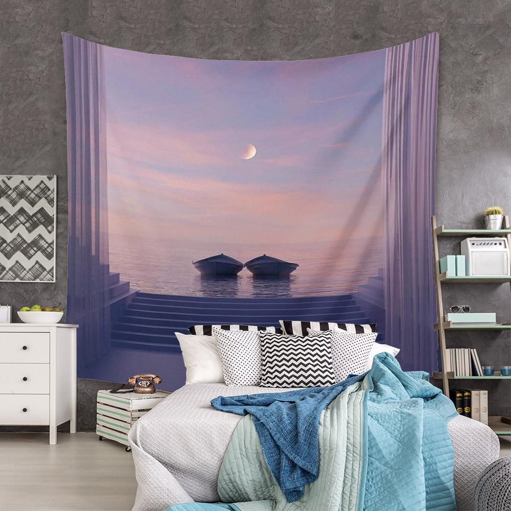 Tapiz transfronterizo para el hogar, tapiz bohemio, decoración de habitación, tela colgante, fondo de tela, tapiz de paisaje con viento.