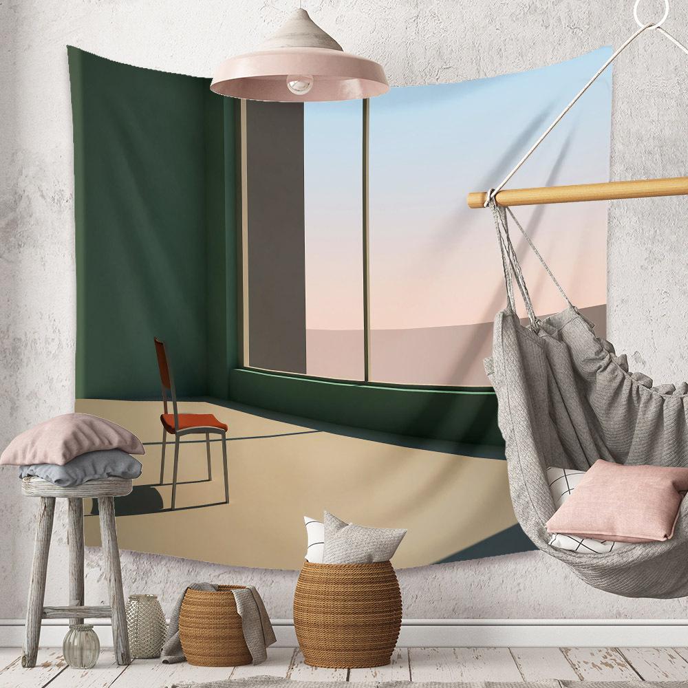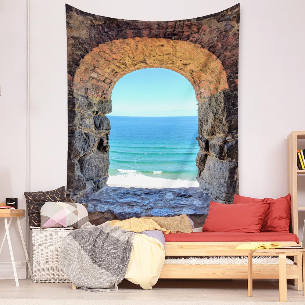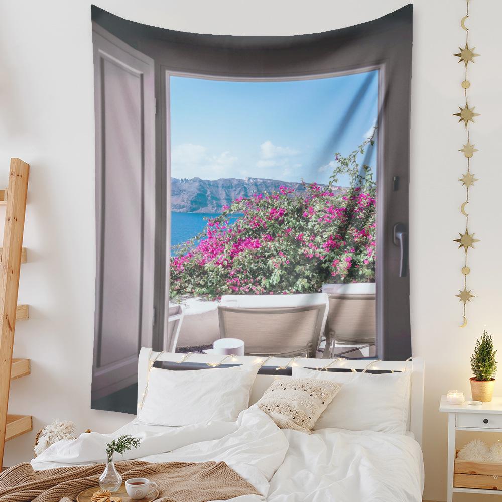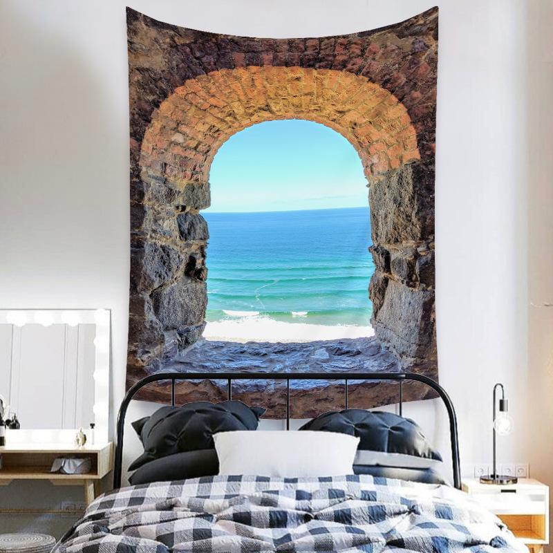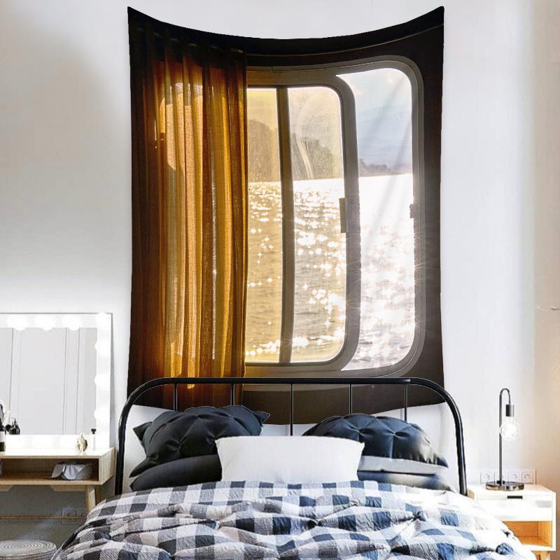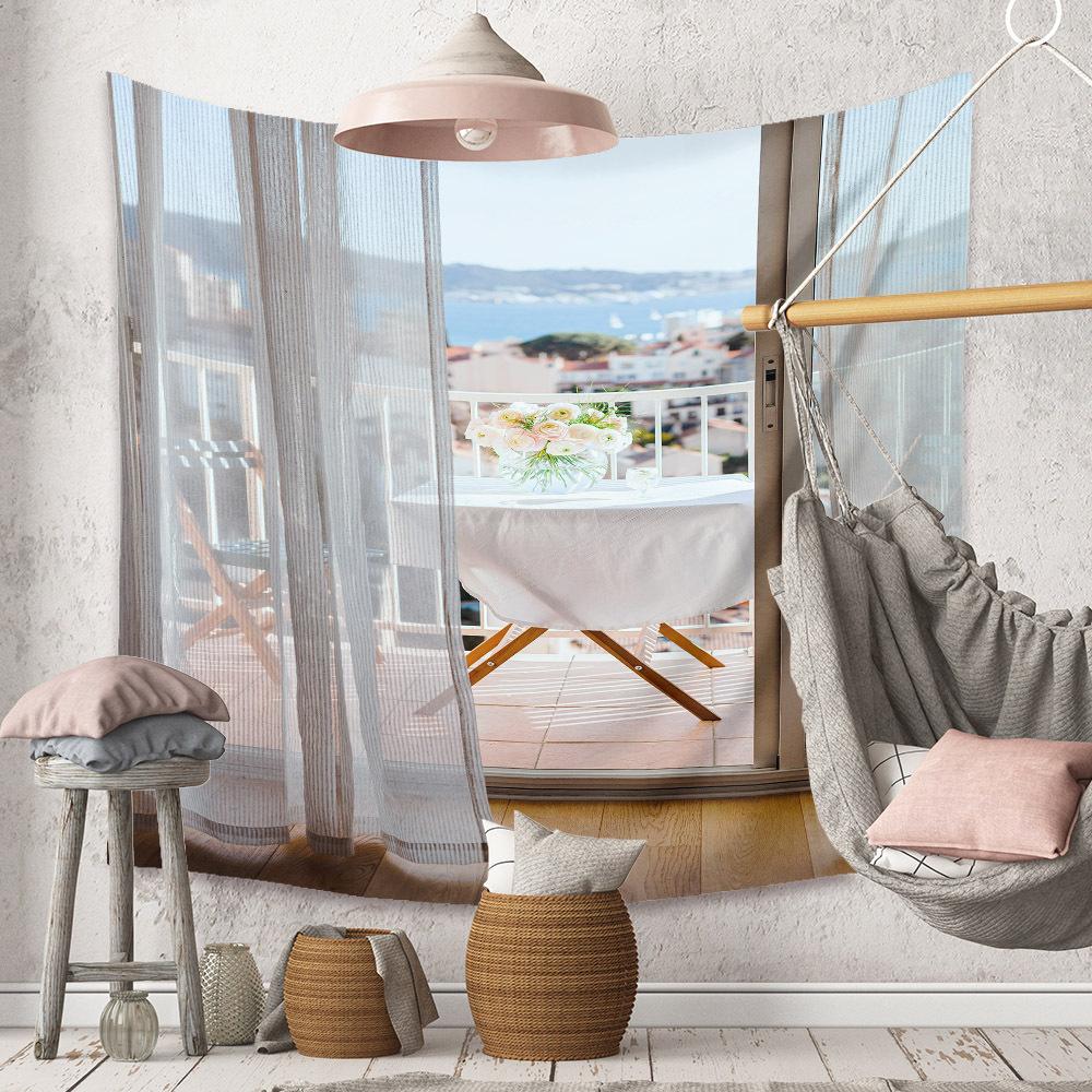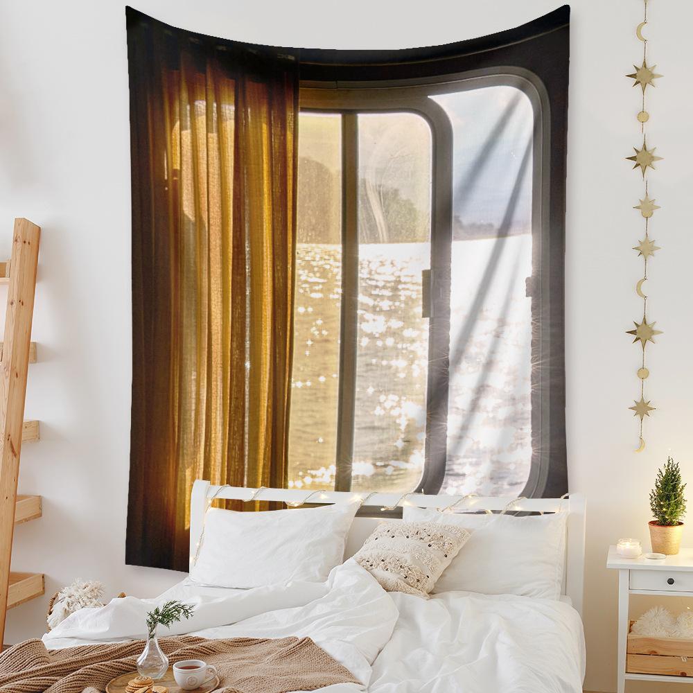 Tapiz transfronterizo para el hogar, tapiz bohemio, decoración de habitación, tela colgante, fondo de tela, tapiz de paisaje con viento.
