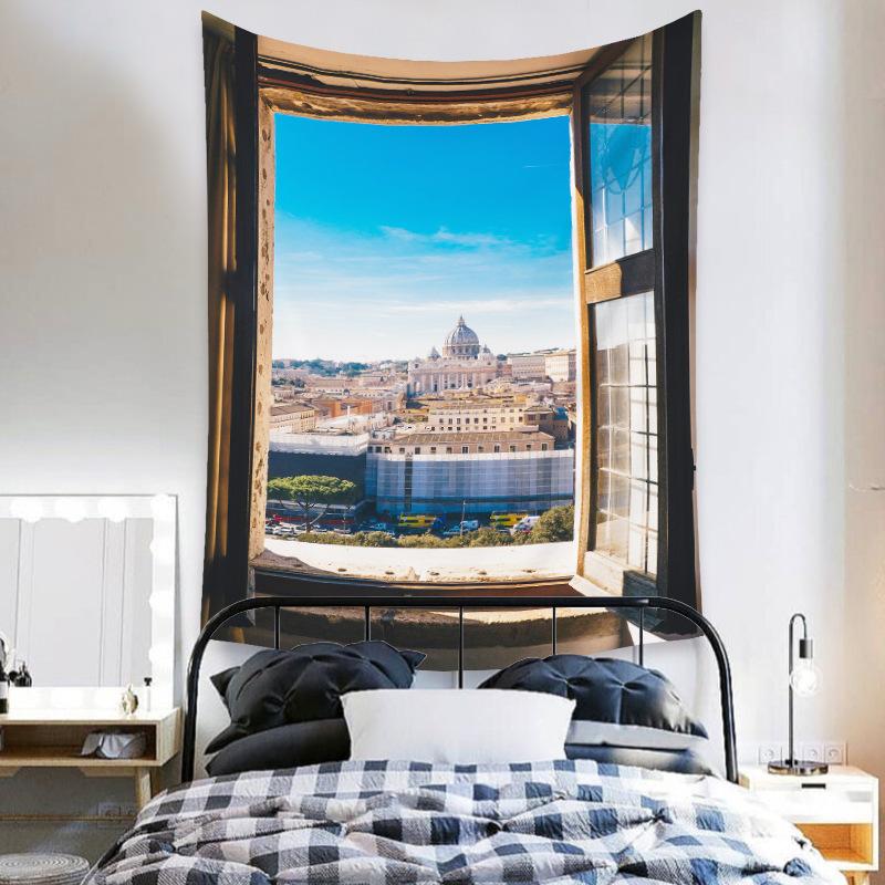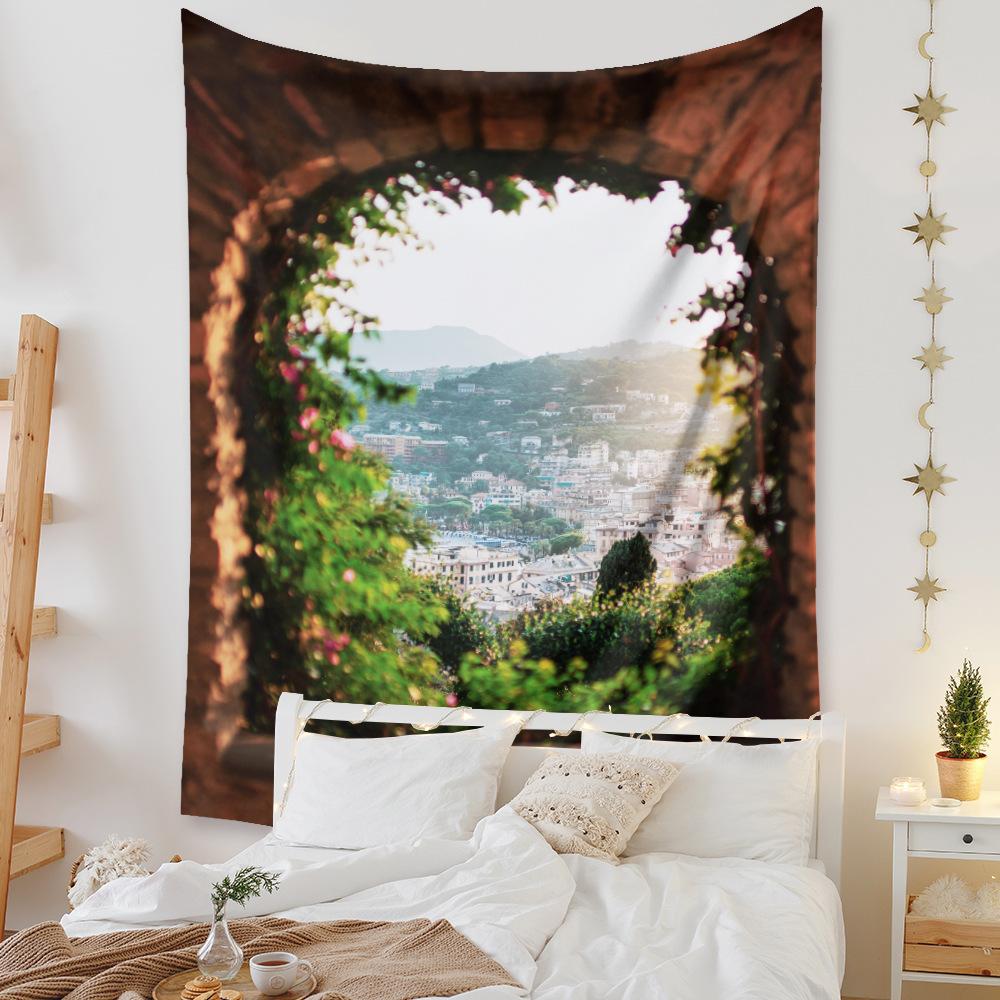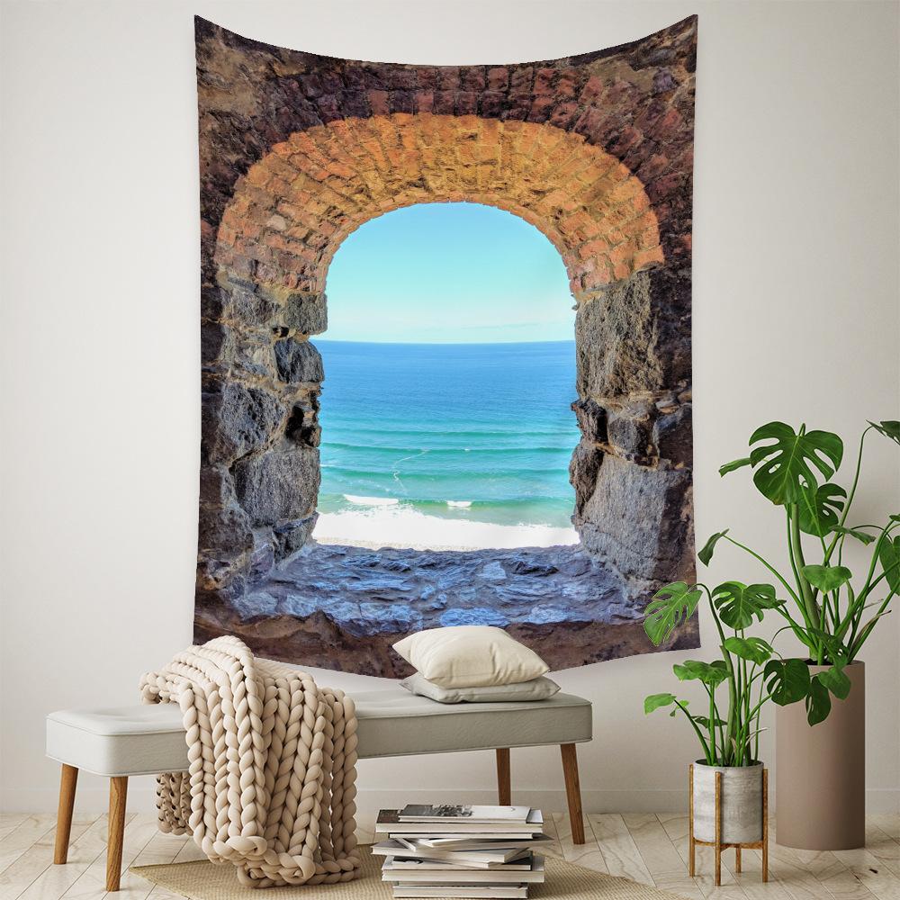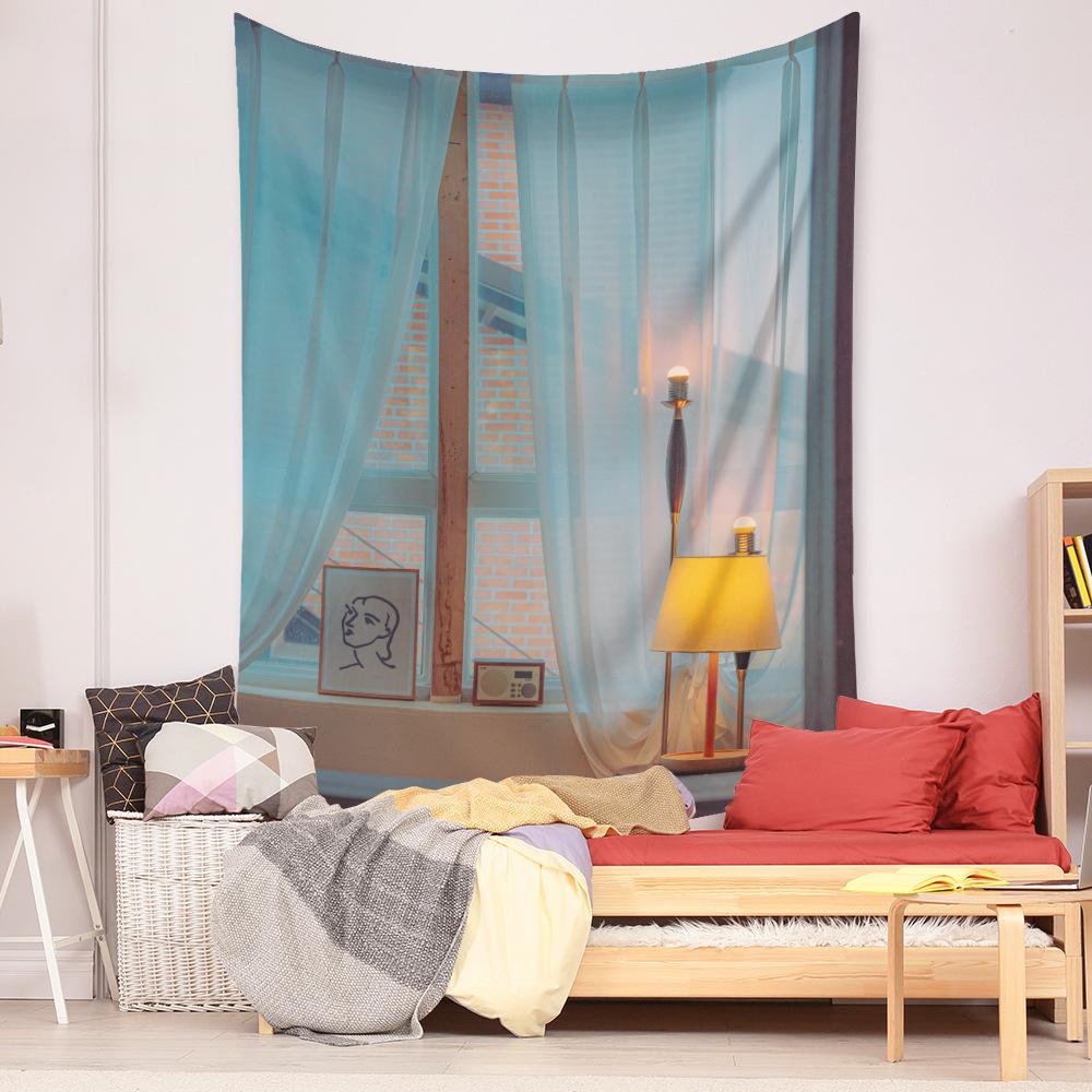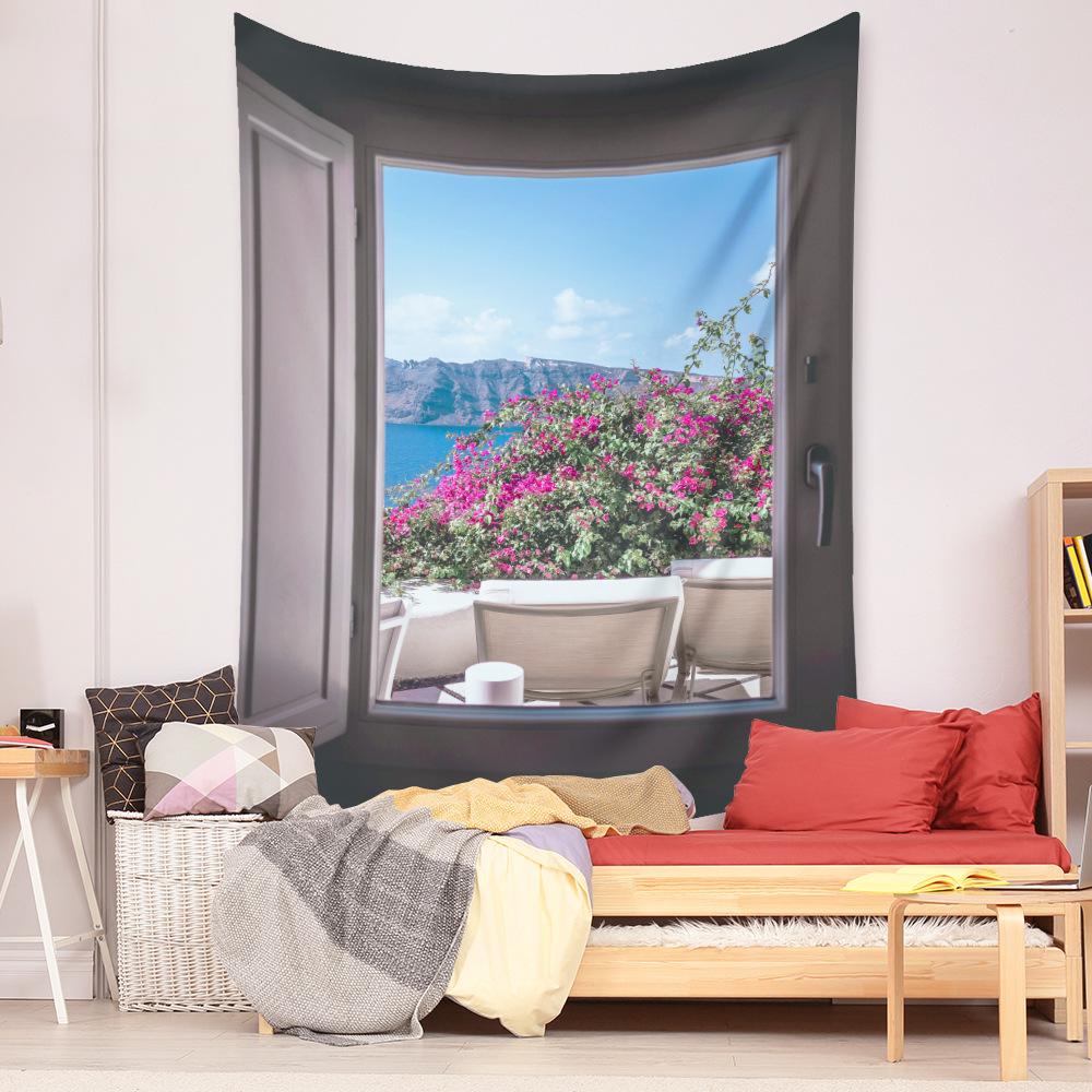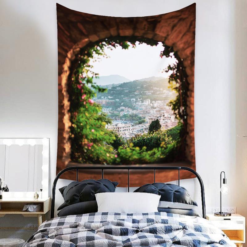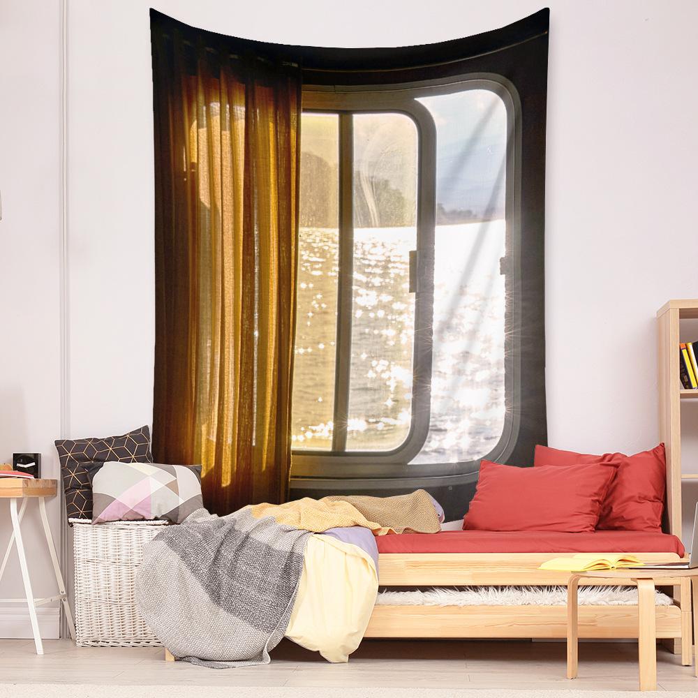 Tapiz transfronterizo para el hogar, tapiz bohemio, decoración de habitación, tela colgante, fondo de tela, tapiz de paisaje con viento.