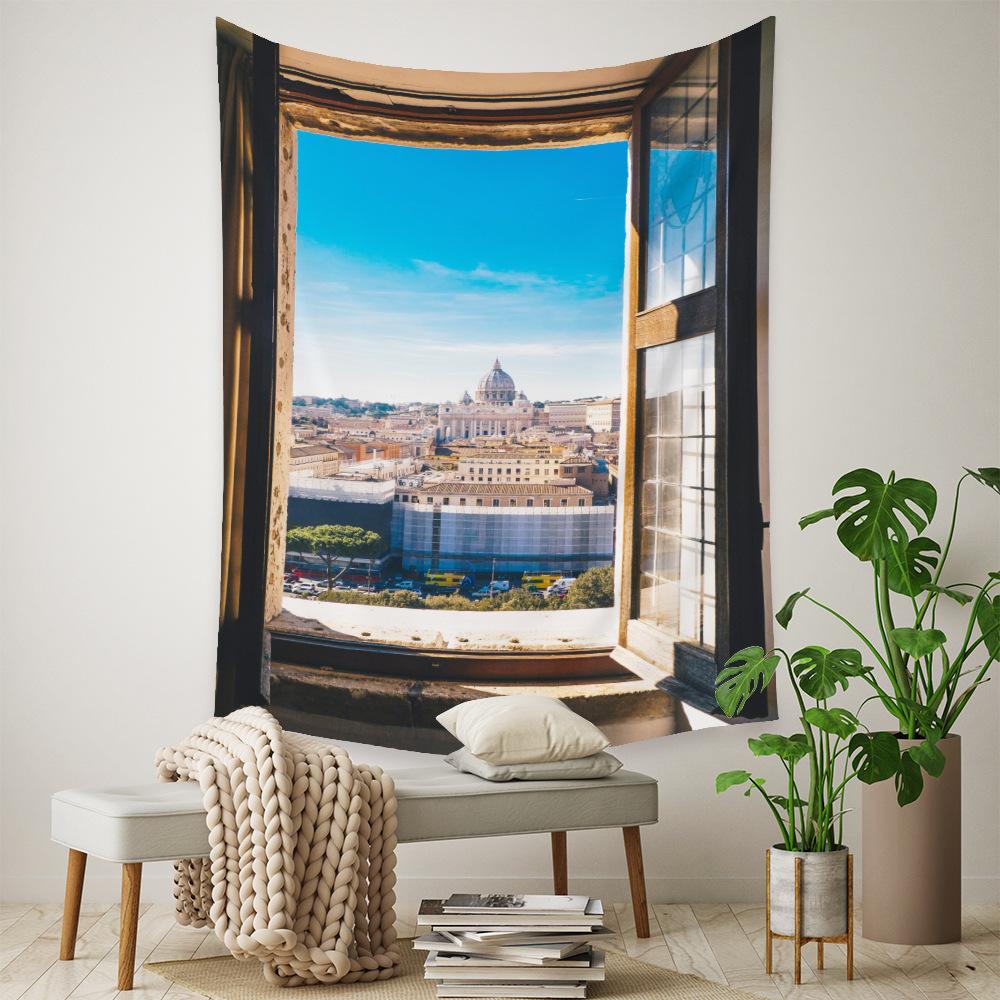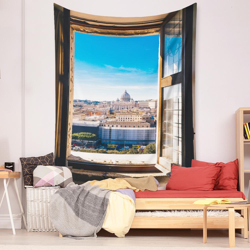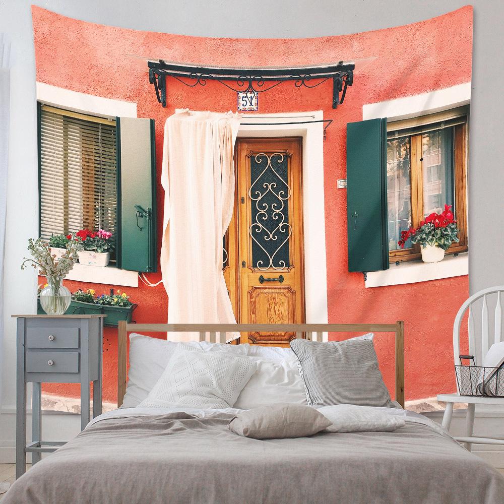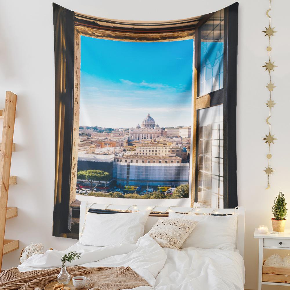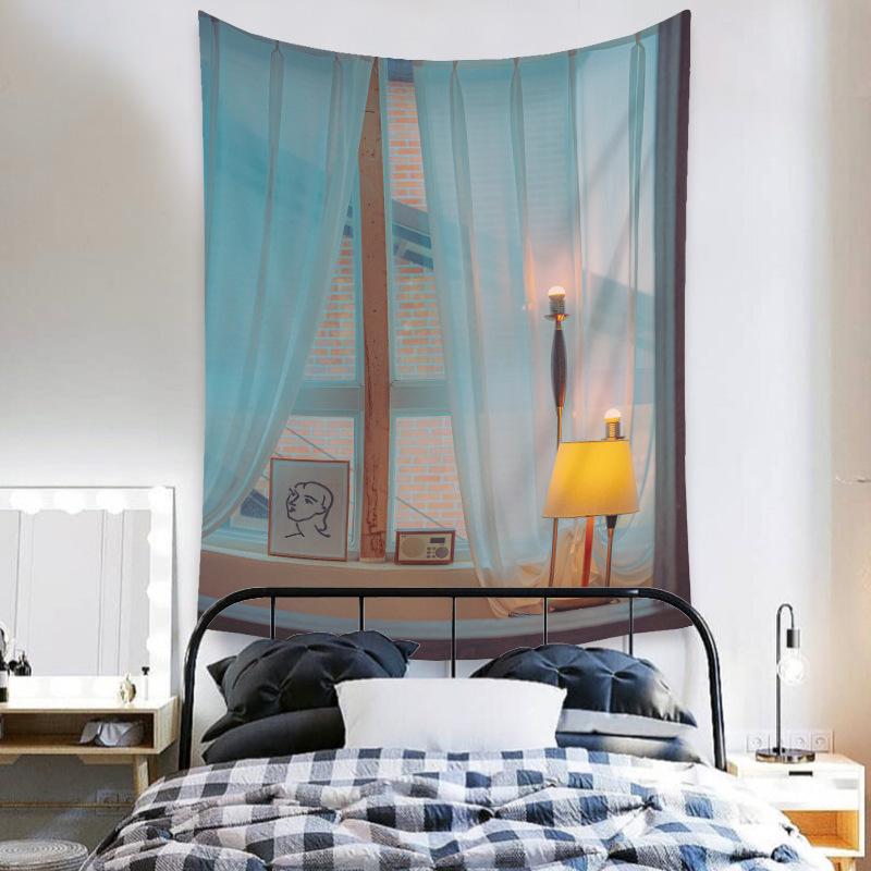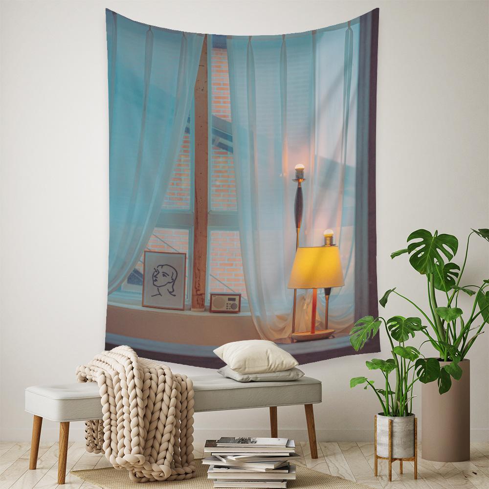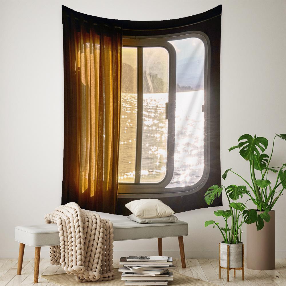 Tapiz transfronterizo para el hogar, tapiz bohemio, decoración de habitación, tela colgante, fondo de tela, tapiz de paisaje con viento.