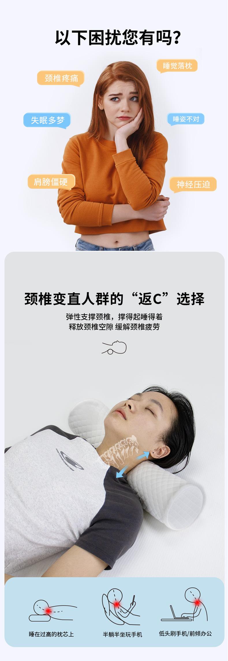 Almohada cervical transfronteriza, venta al por mayor, para hoteles y oficinas, con rebote lento, redonda, de espuma viscoelástica, con núcleo cilíndrico.