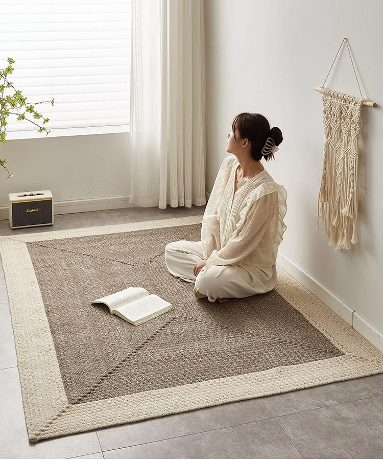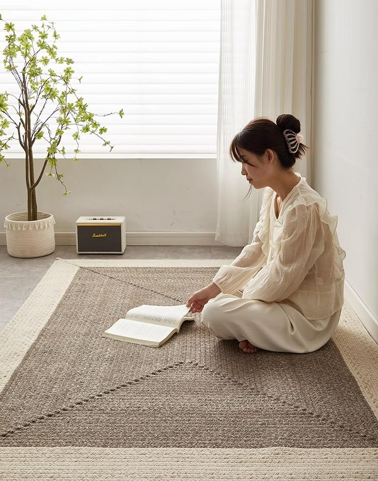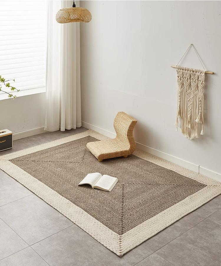 Alfombra tejida de lana estilo nórdico estudio dormitorio tapete para mesa de centro sala de estar manta de noche resistente a las manchas alfombra de piso no adhesiva