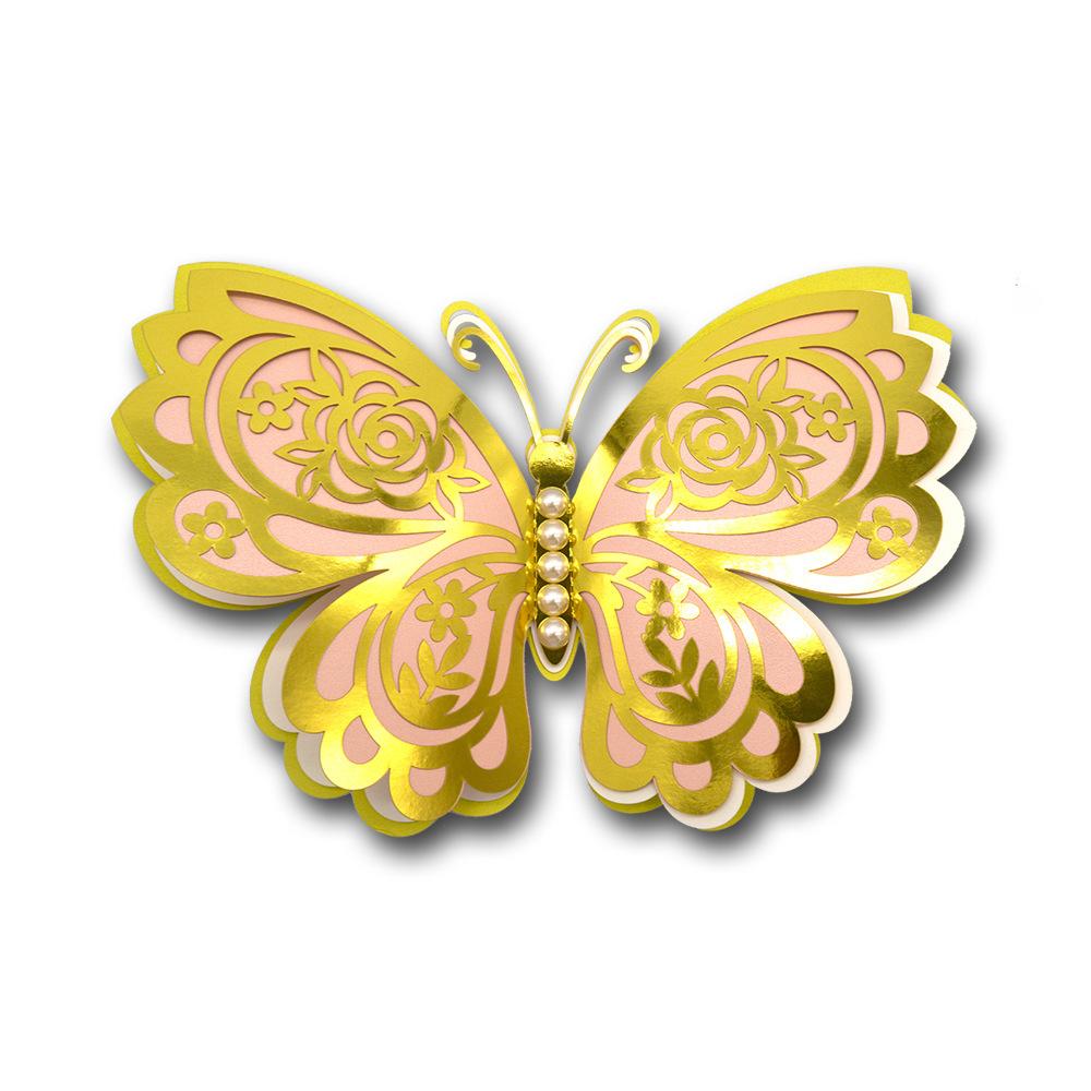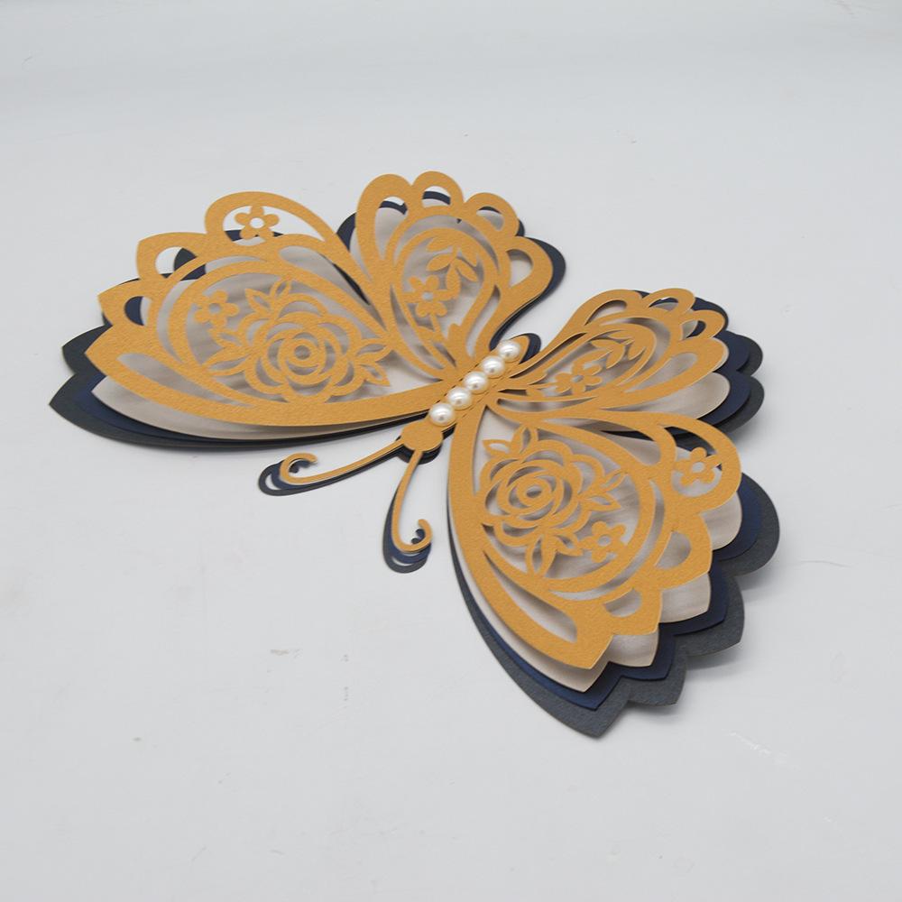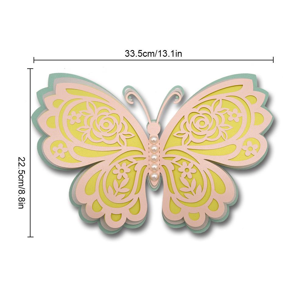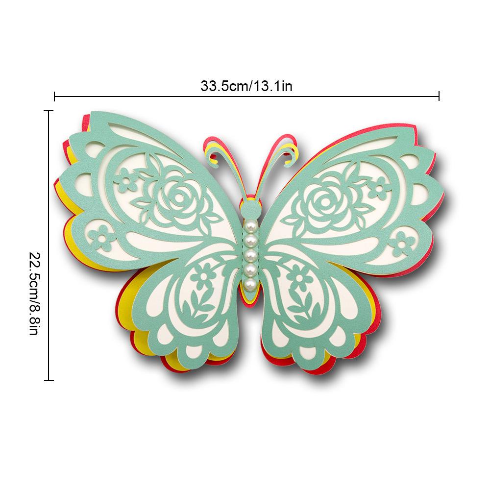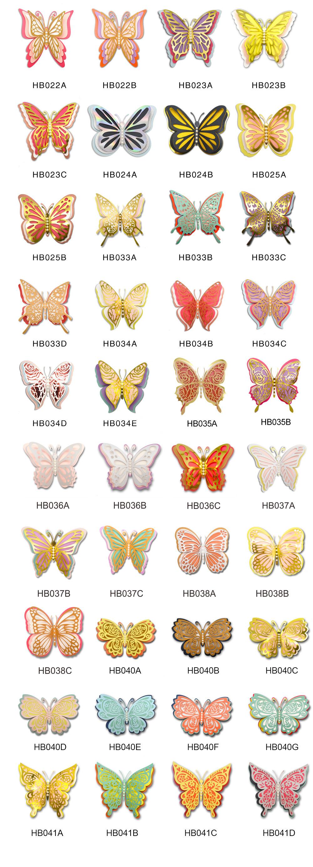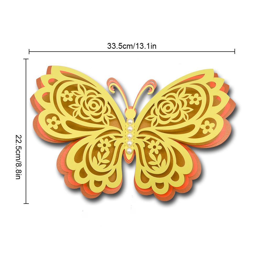 HB040 Pegatinas de pared de mariposa huecas con perlas, 3D, tridimensionales, de cuatro capas, para bodas, festivales, simulación de mariposas, pegatinas decorativas
