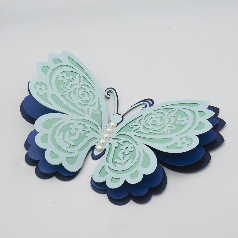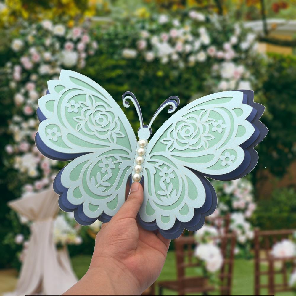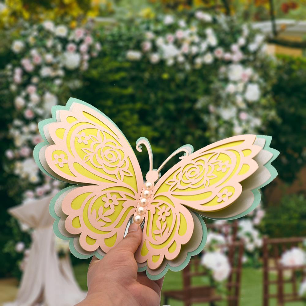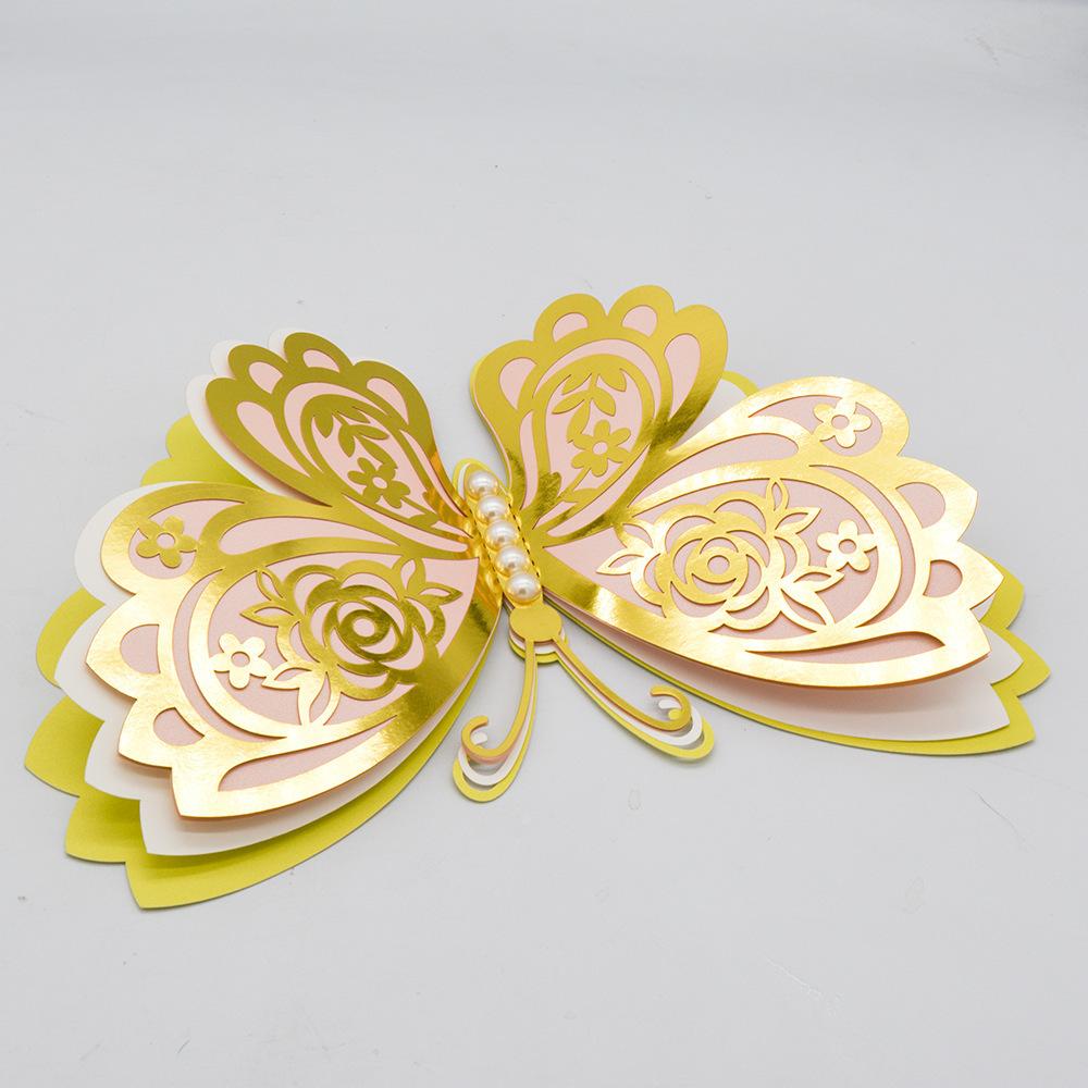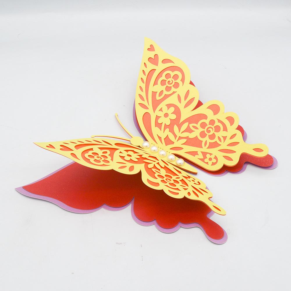 HB040 Pegatinas de pared de mariposa huecas con perlas, 3D, tridimensionales, de cuatro capas, para bodas, festivales, simulación de mariposas, pegatinas decorativas