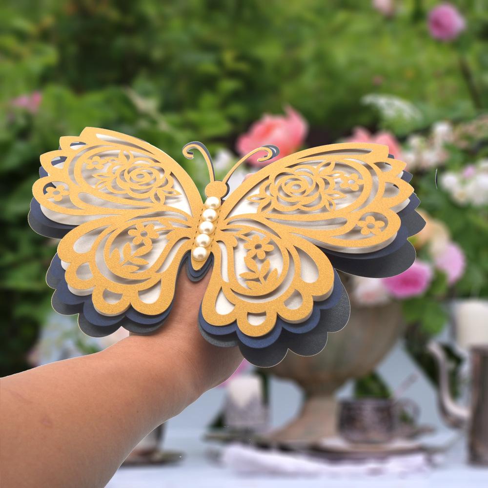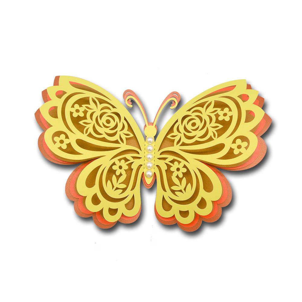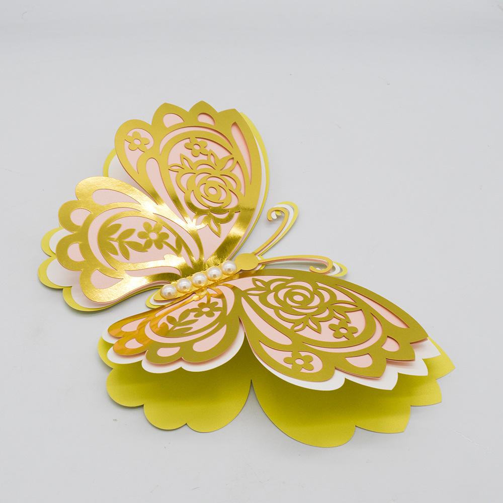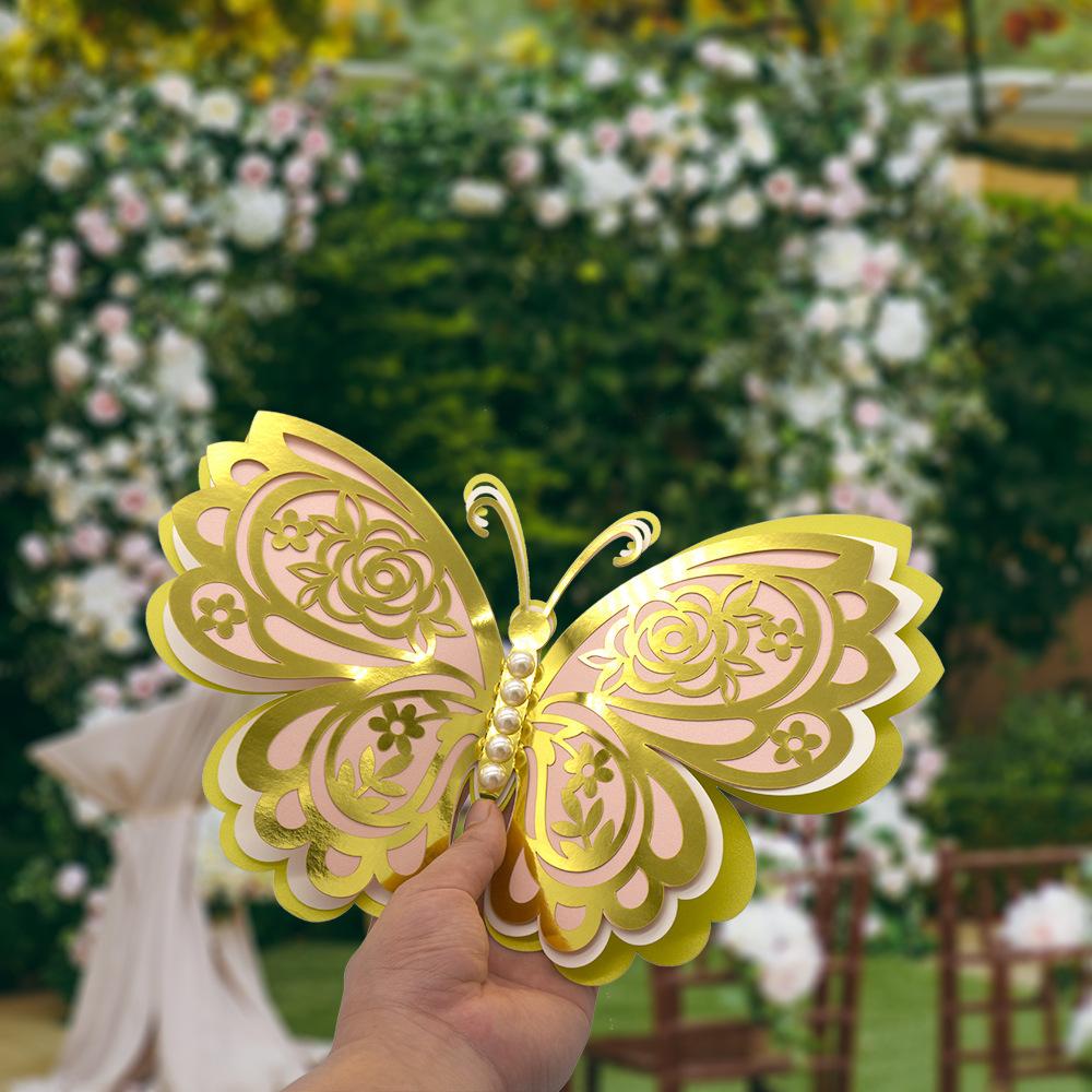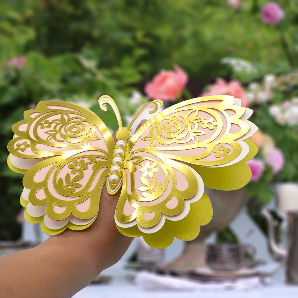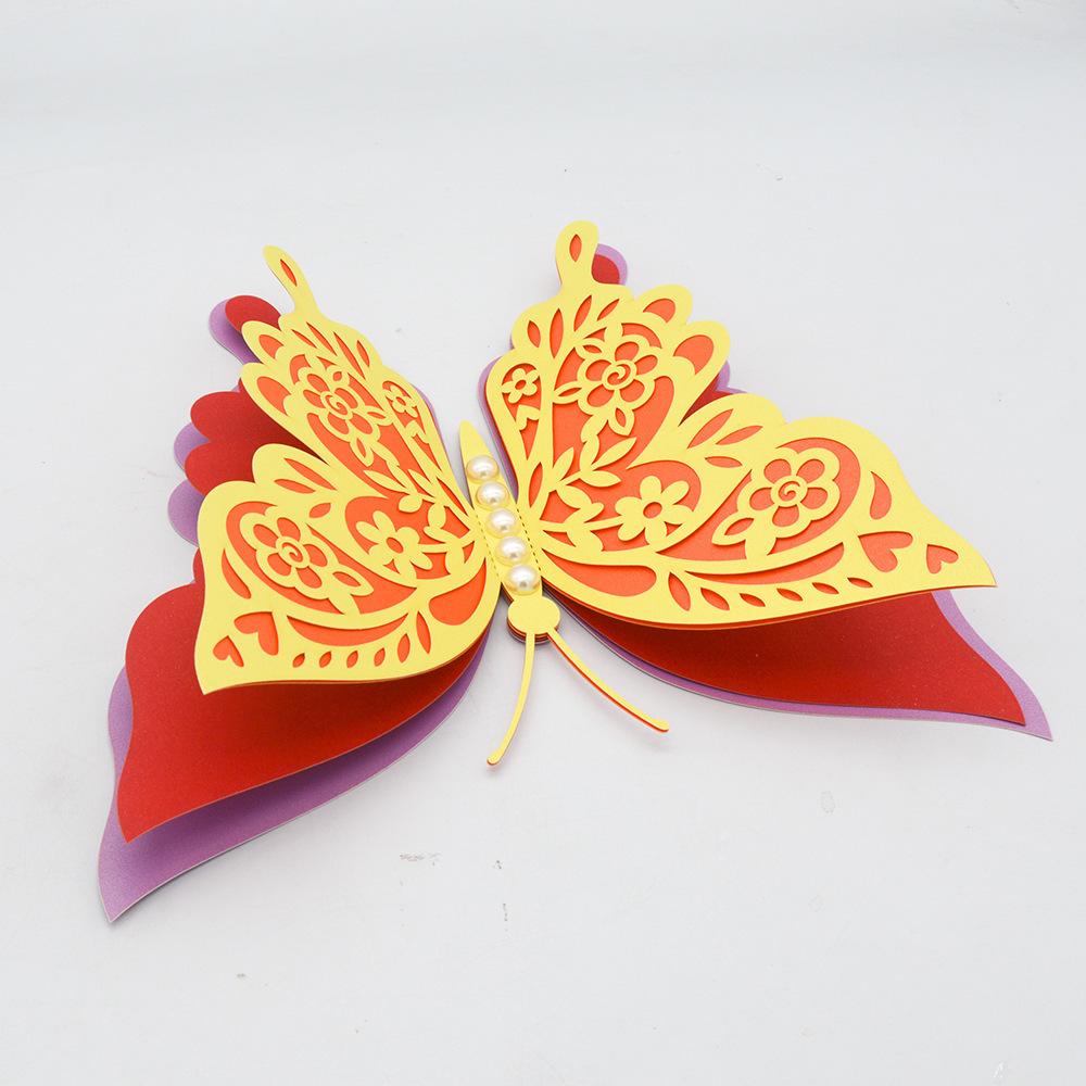HB040 Pegatinas de pared de mariposa huecas con perlas, 3D, tridimensionales, de cuatro capas, para bodas, festivales, simulación de mariposas, pegatinas decorativas