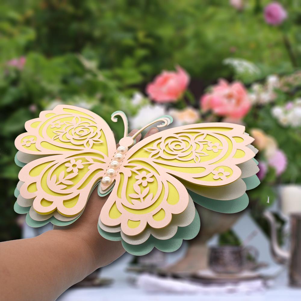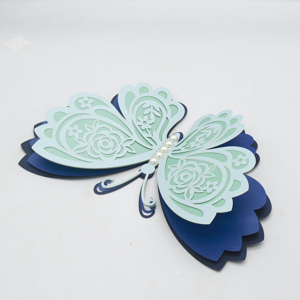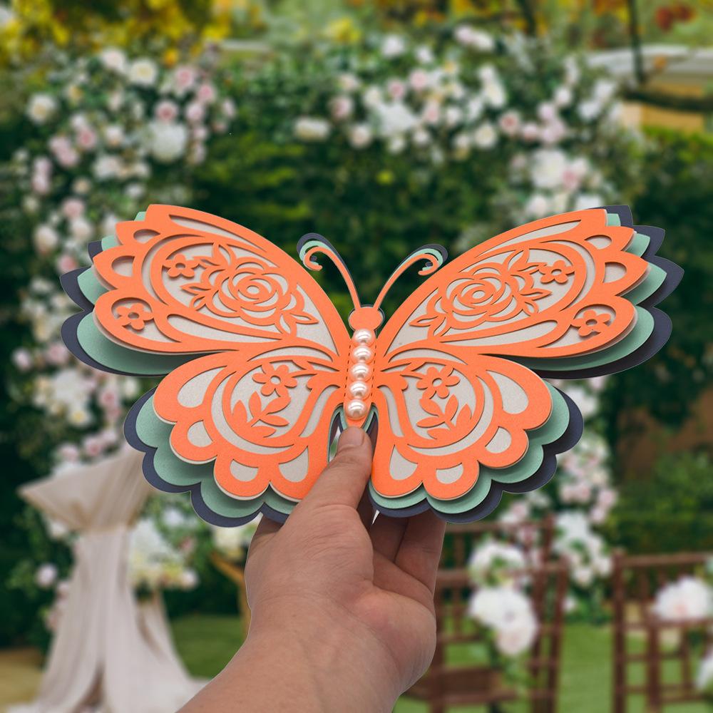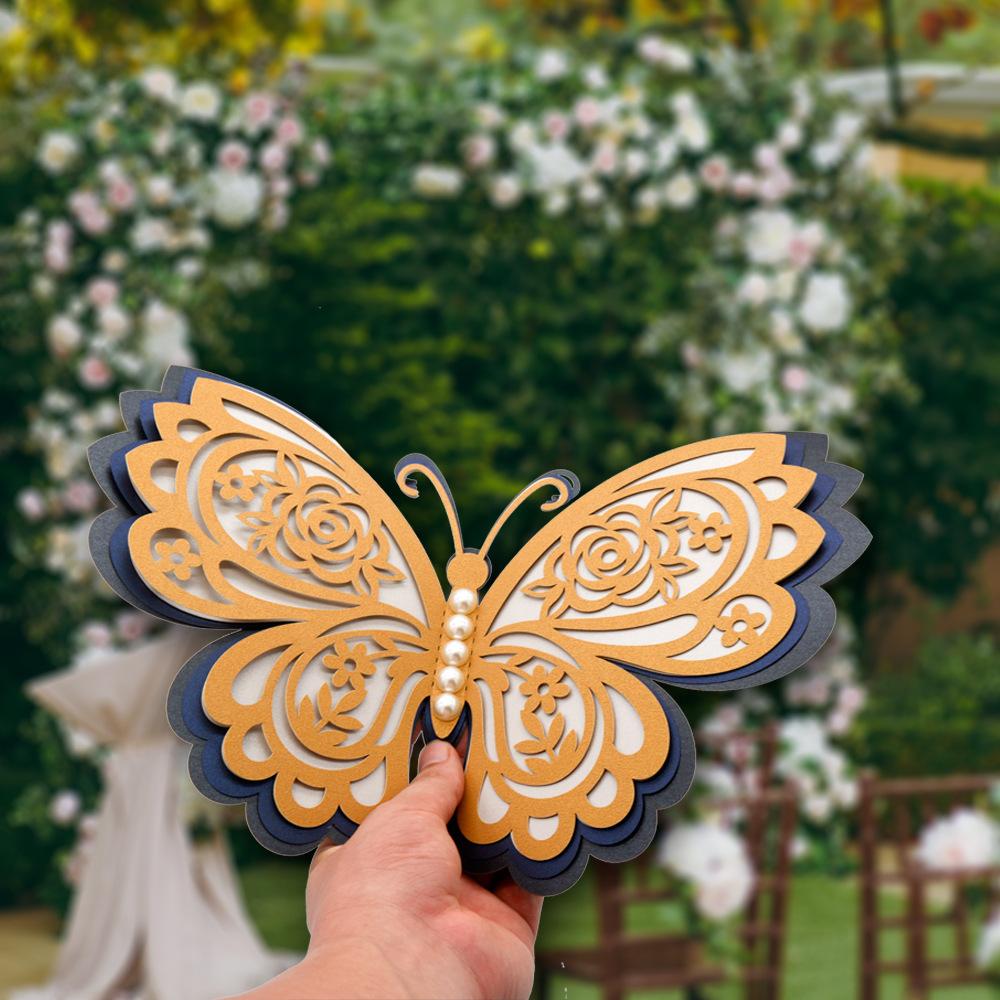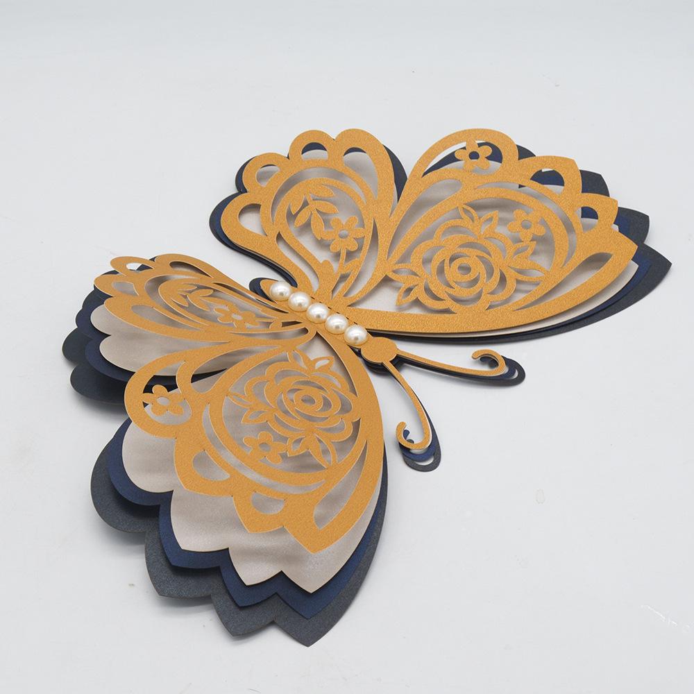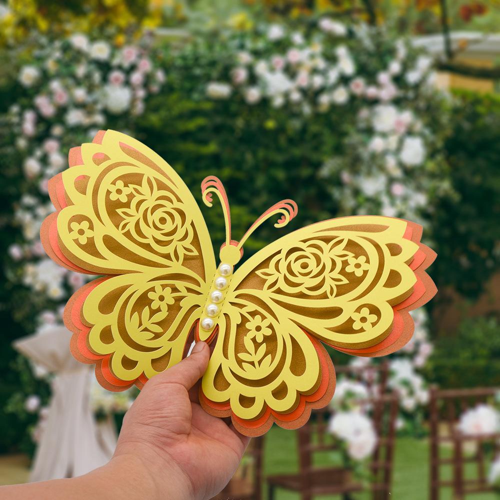 HB040 Pegatinas de pared de mariposa huecas con perlas, 3D, tridimensionales, de cuatro capas, para bodas, festivales, simulación de mariposas, pegatinas decorativas