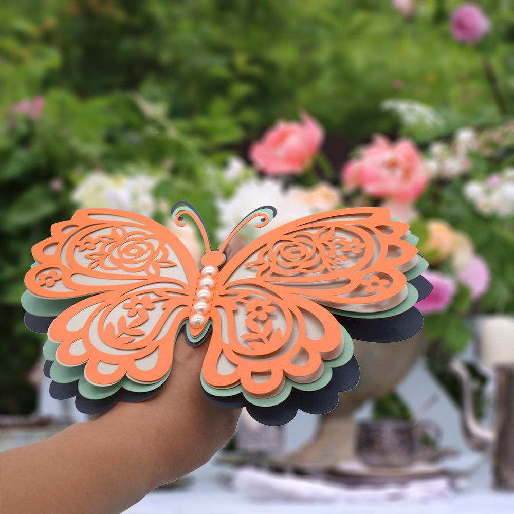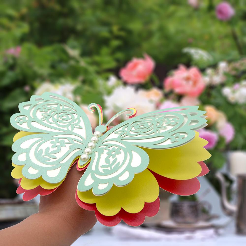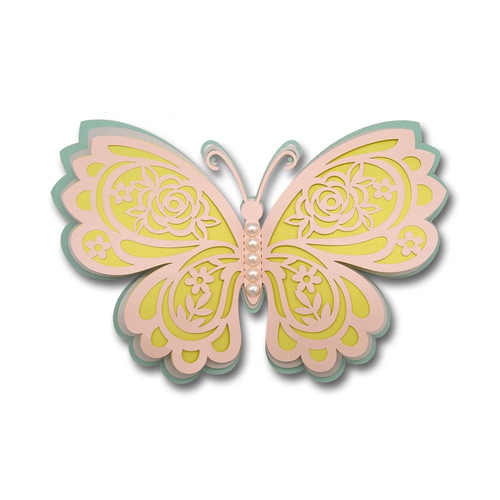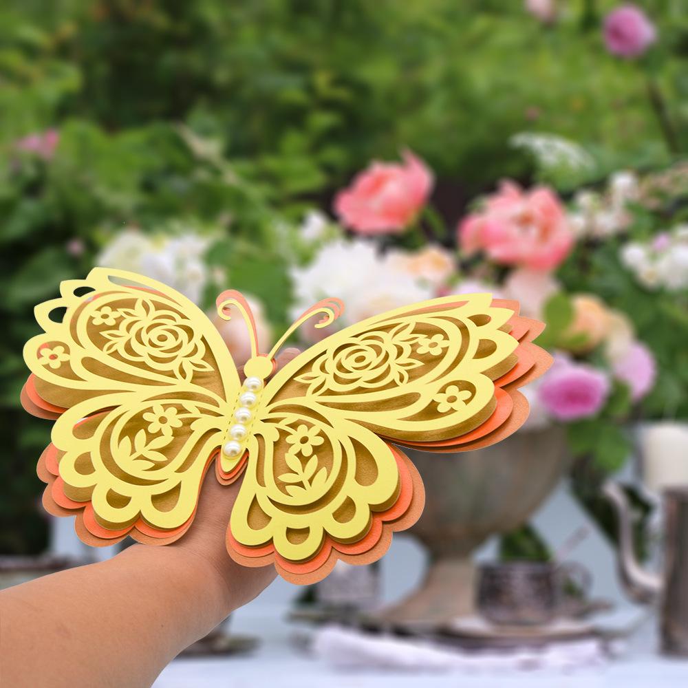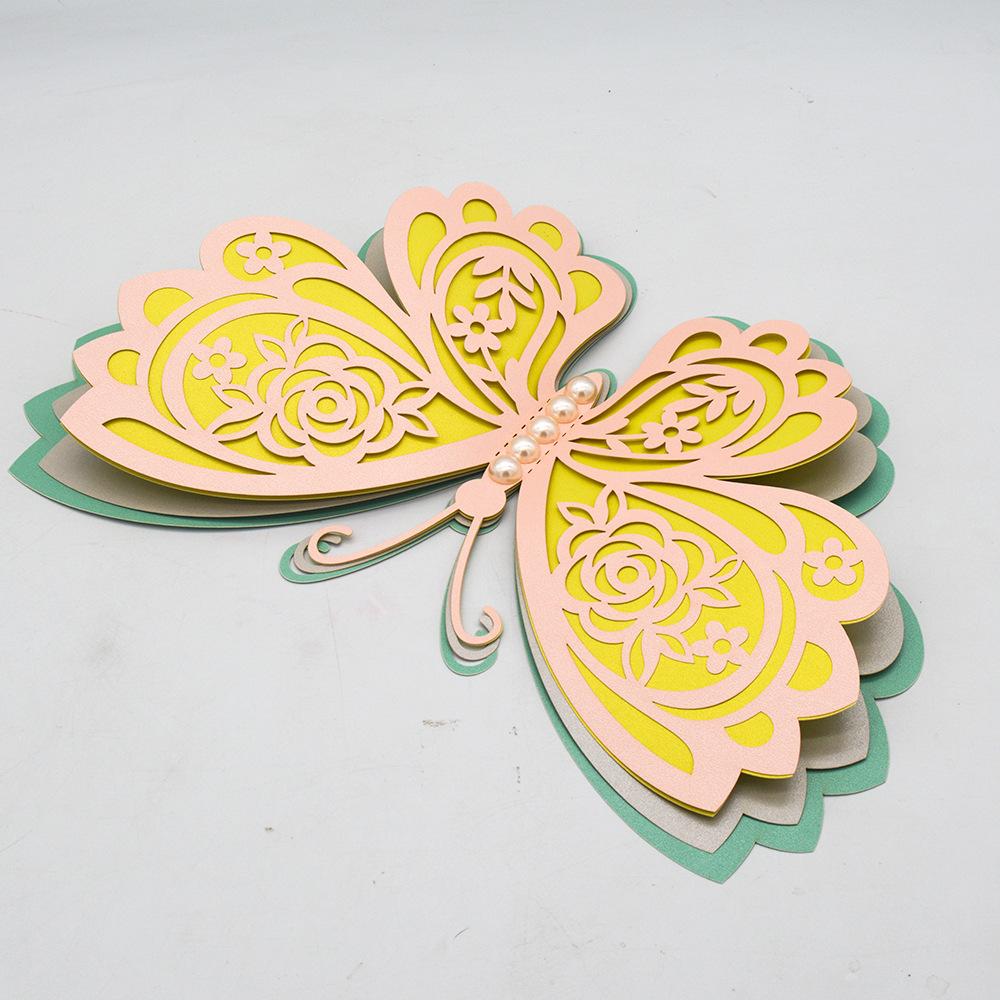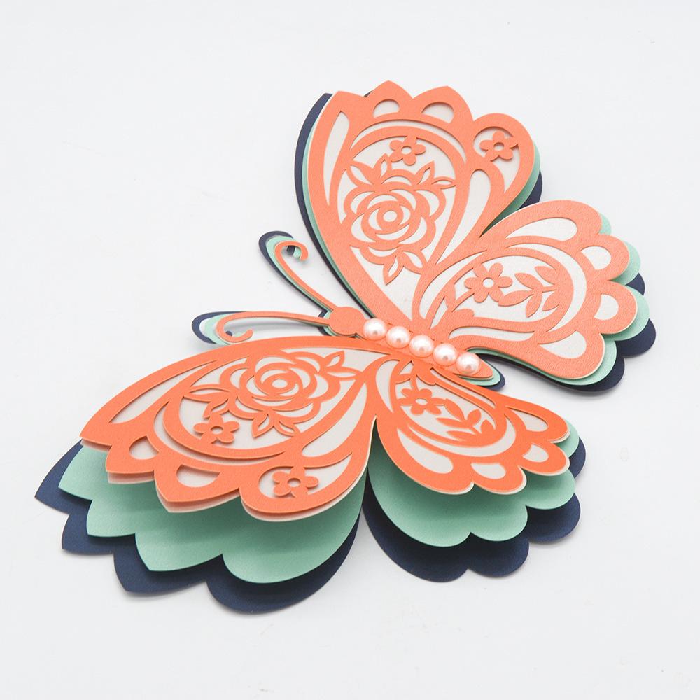HB040 Pegatinas de pared de mariposa huecas con perlas, 3D, tridimensionales, de cuatro capas, para bodas, festivales, simulación de mariposas, pegatinas decorativas