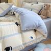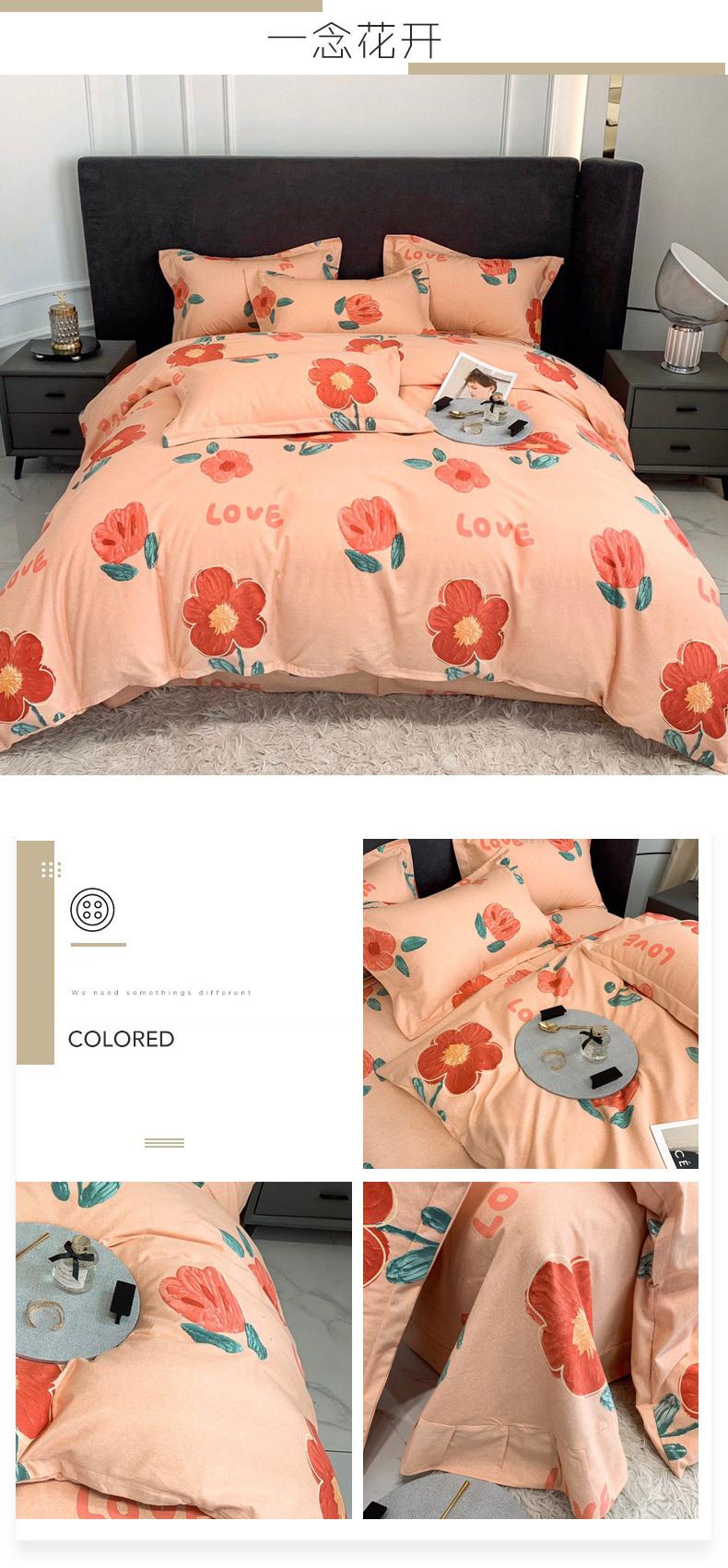 Juego de cama de cuatro piezas de algodón cepillado grueso 100 % algodón, funda de edredón sencilla, sábana y juego de cama de tres piezas para dormitorio de estudiantes