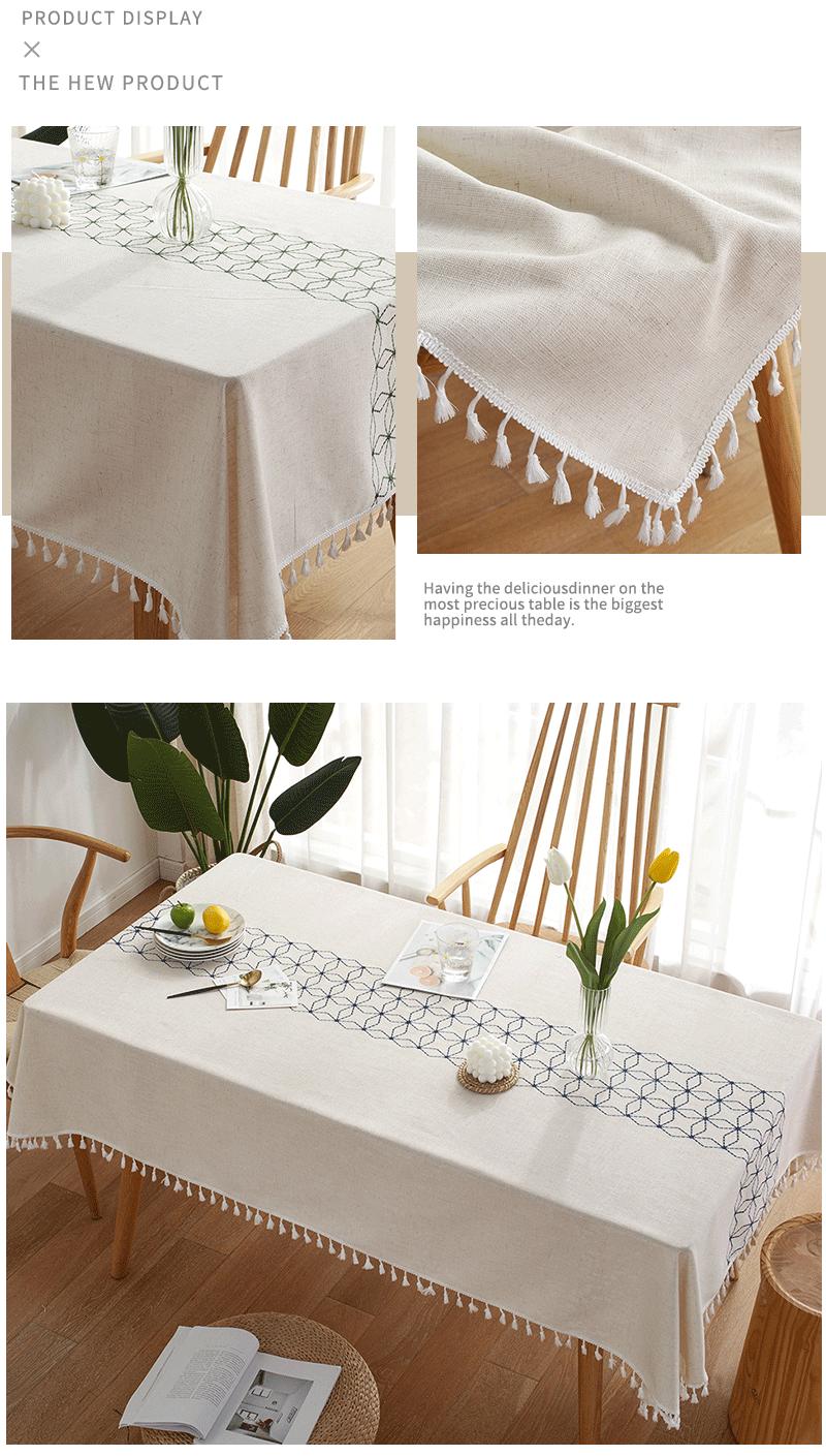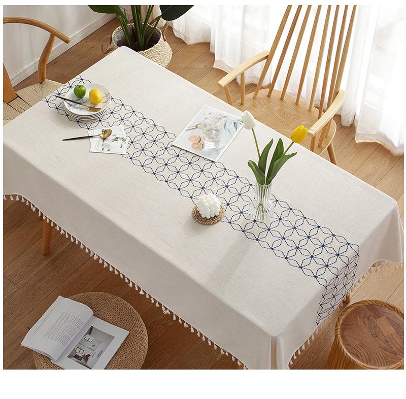 Mantel Nuevo Nórdico Mantel Rombos Bordado Geométrico Imitación Algodón y Lino Rectangular Mesa de Comedor Mesa de Centro Cubre Mantel Venta al por Mayor