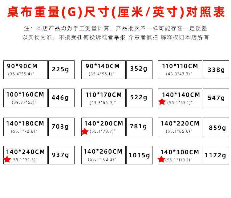 60*60cm, 90*90cm, 90*140cm, 110*110cm, 140*140cm, 100*160cm, 110*170cm, 140*180cm, 140*200cm, 140*220cm, 140*2...