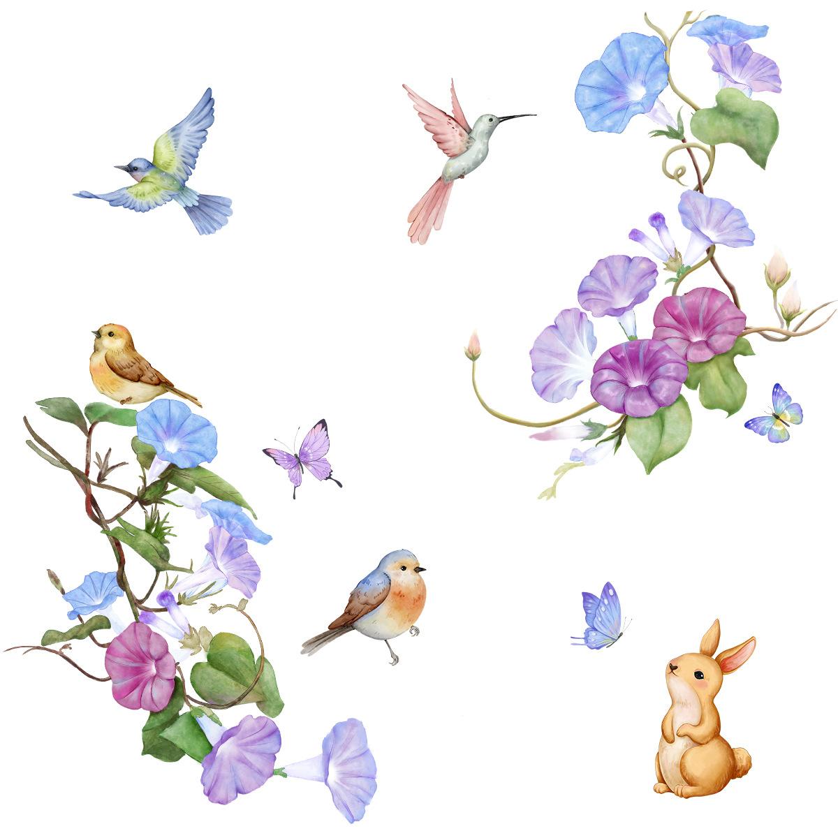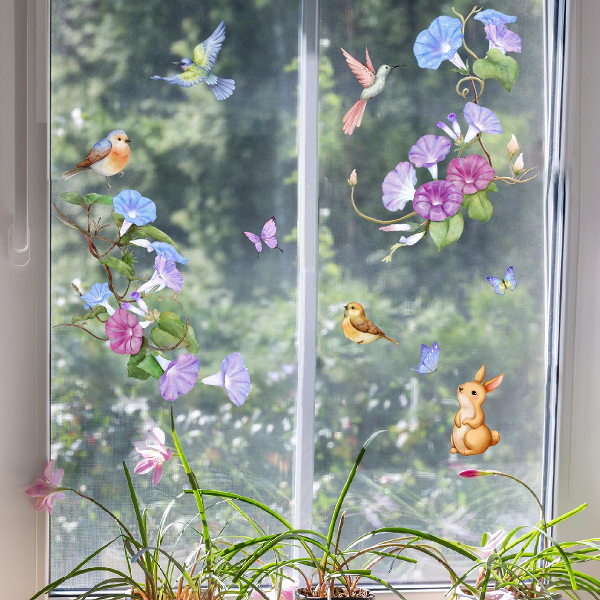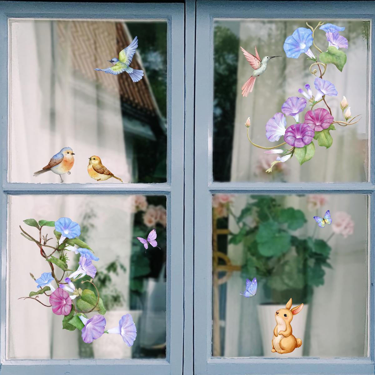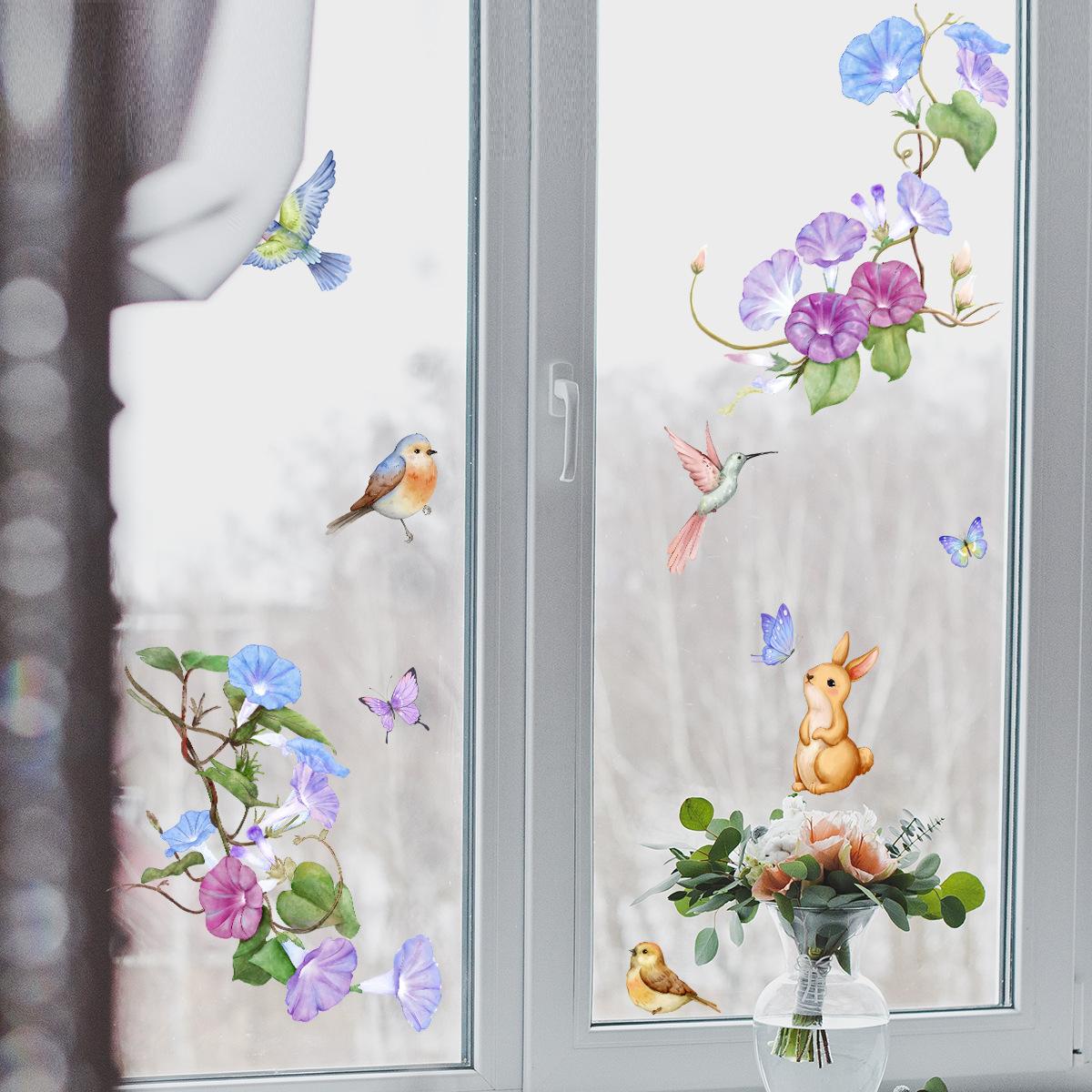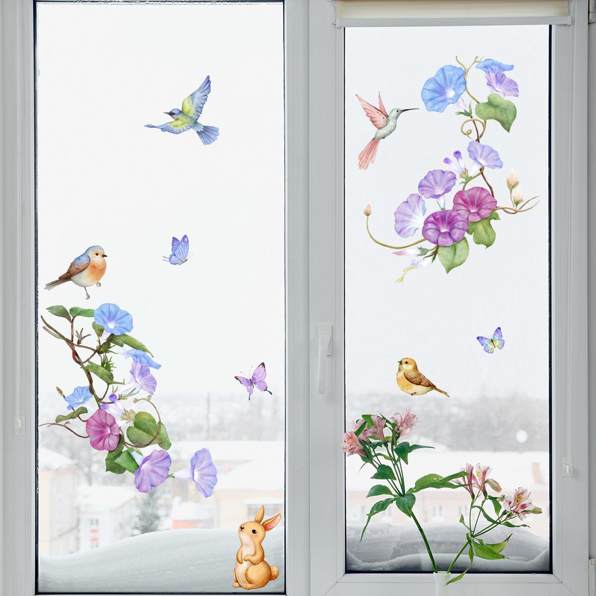 Pegatinas de pared de un metro, pegatinas de pared de plantas, flores y pájaros, pegatinas para ventanas de vidrio, pegatinas de pared para decoración del hogar, pegatinas autoadhesivas al por mayor