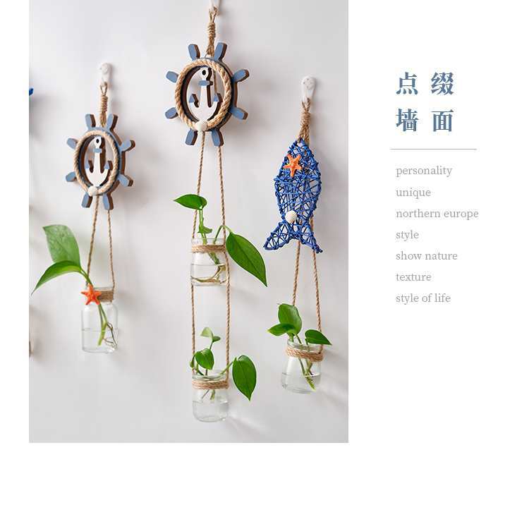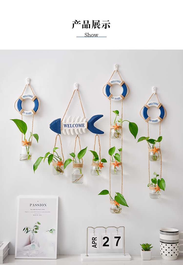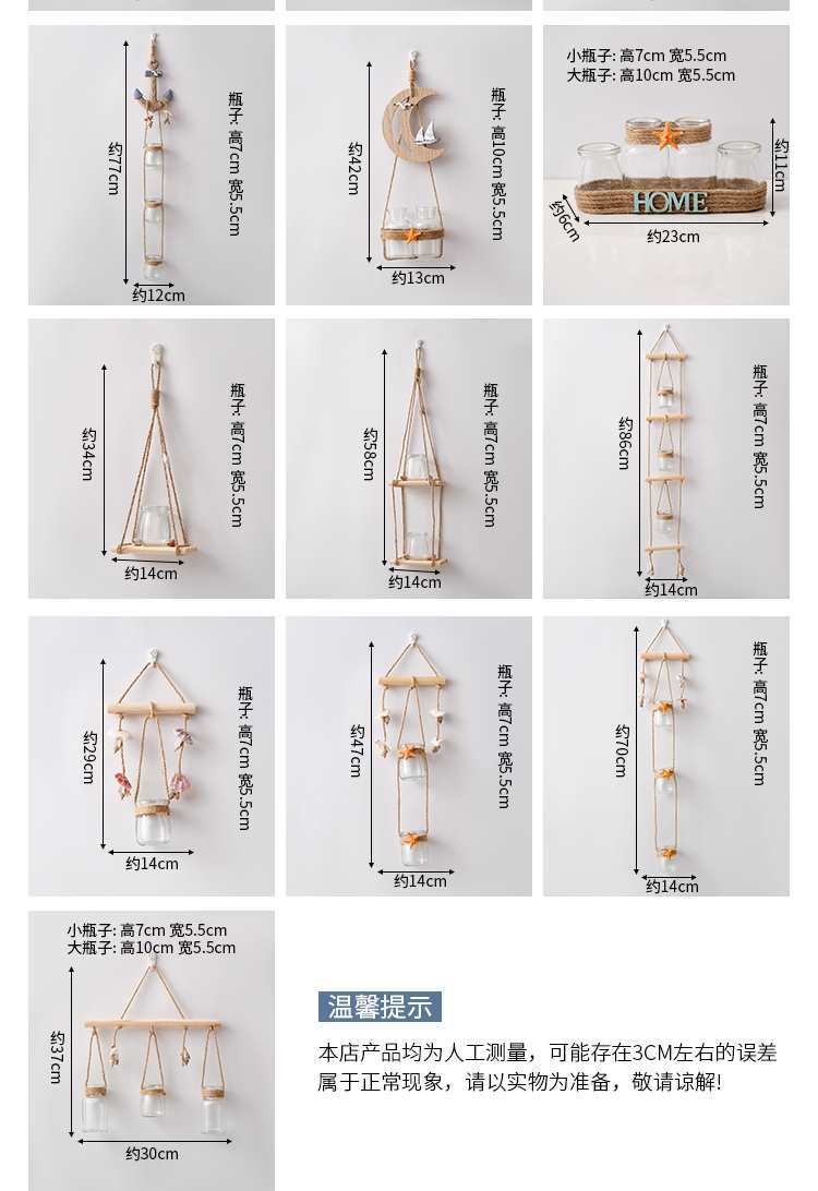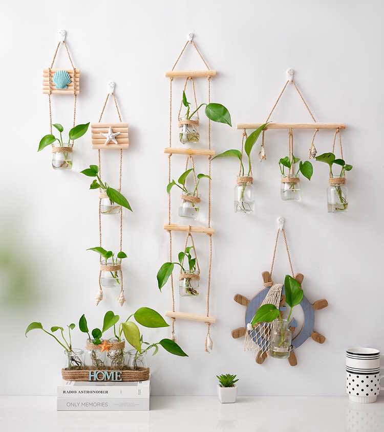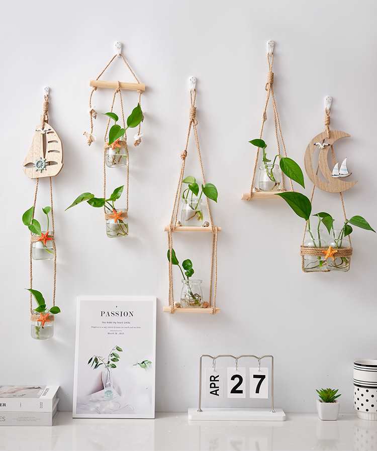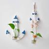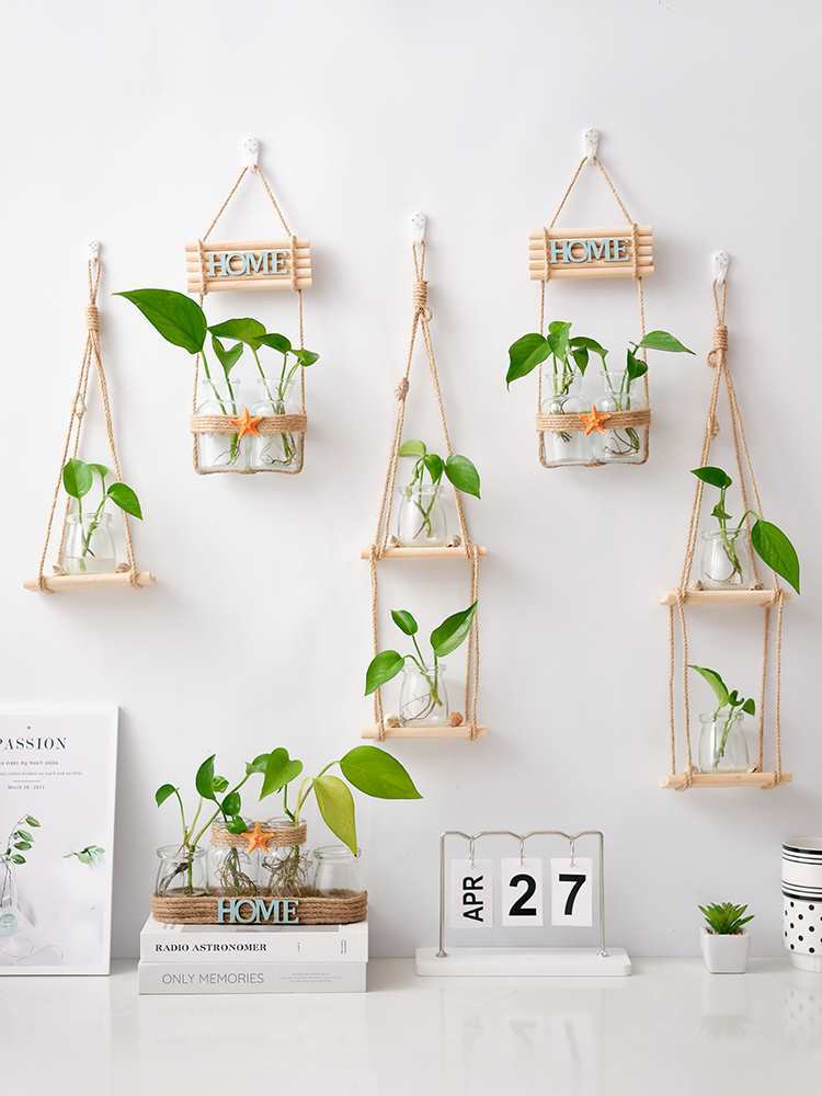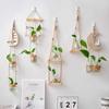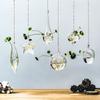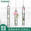 Jarrón de cristal colgante de pared con diseño de planta hidropónica creativa Ins, decoración de rosa verde, botella pequeña con correa, decoración colgante de pared sencilla y fresca.