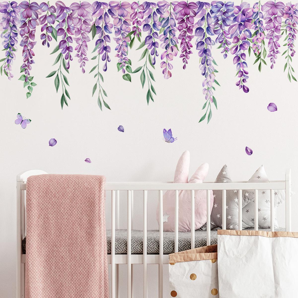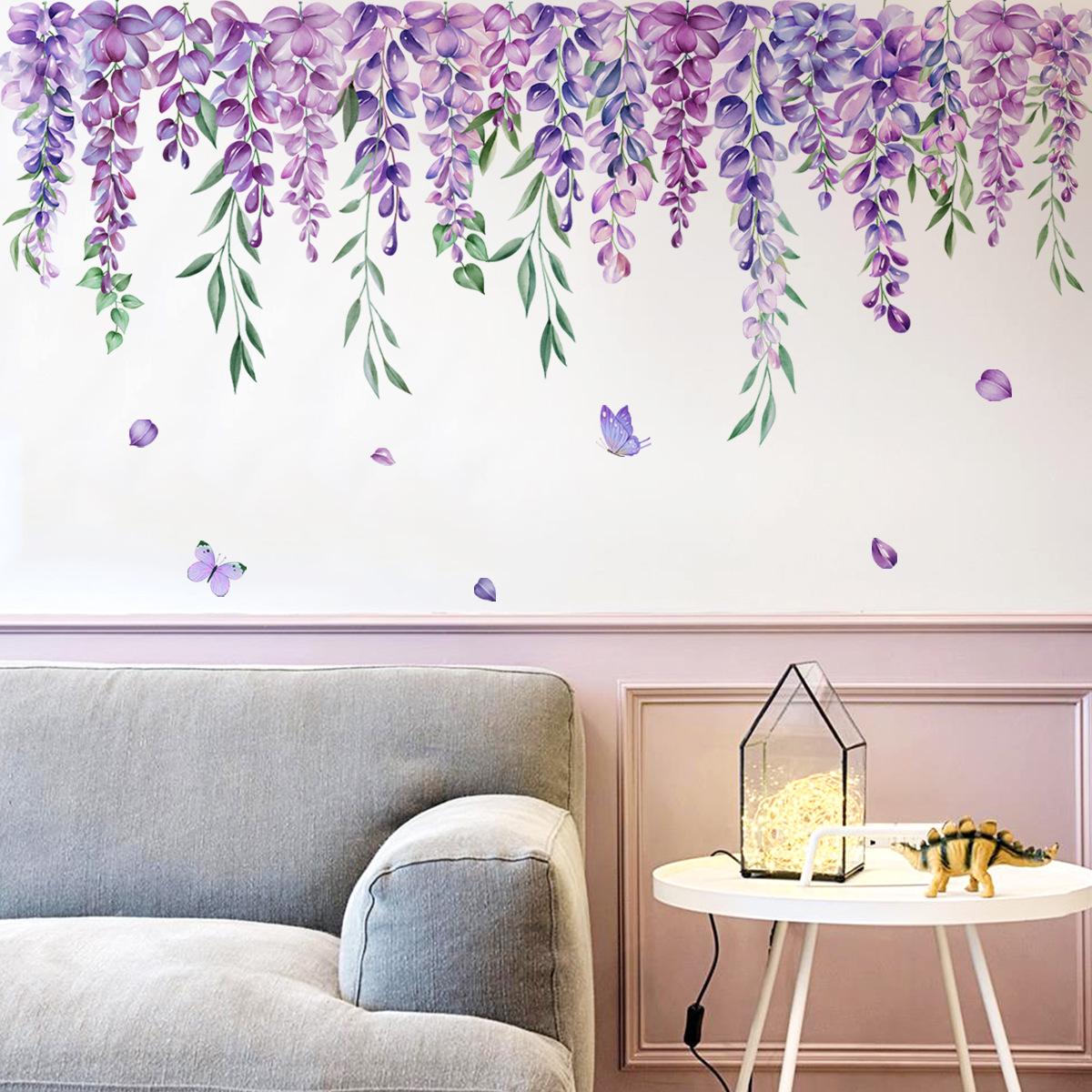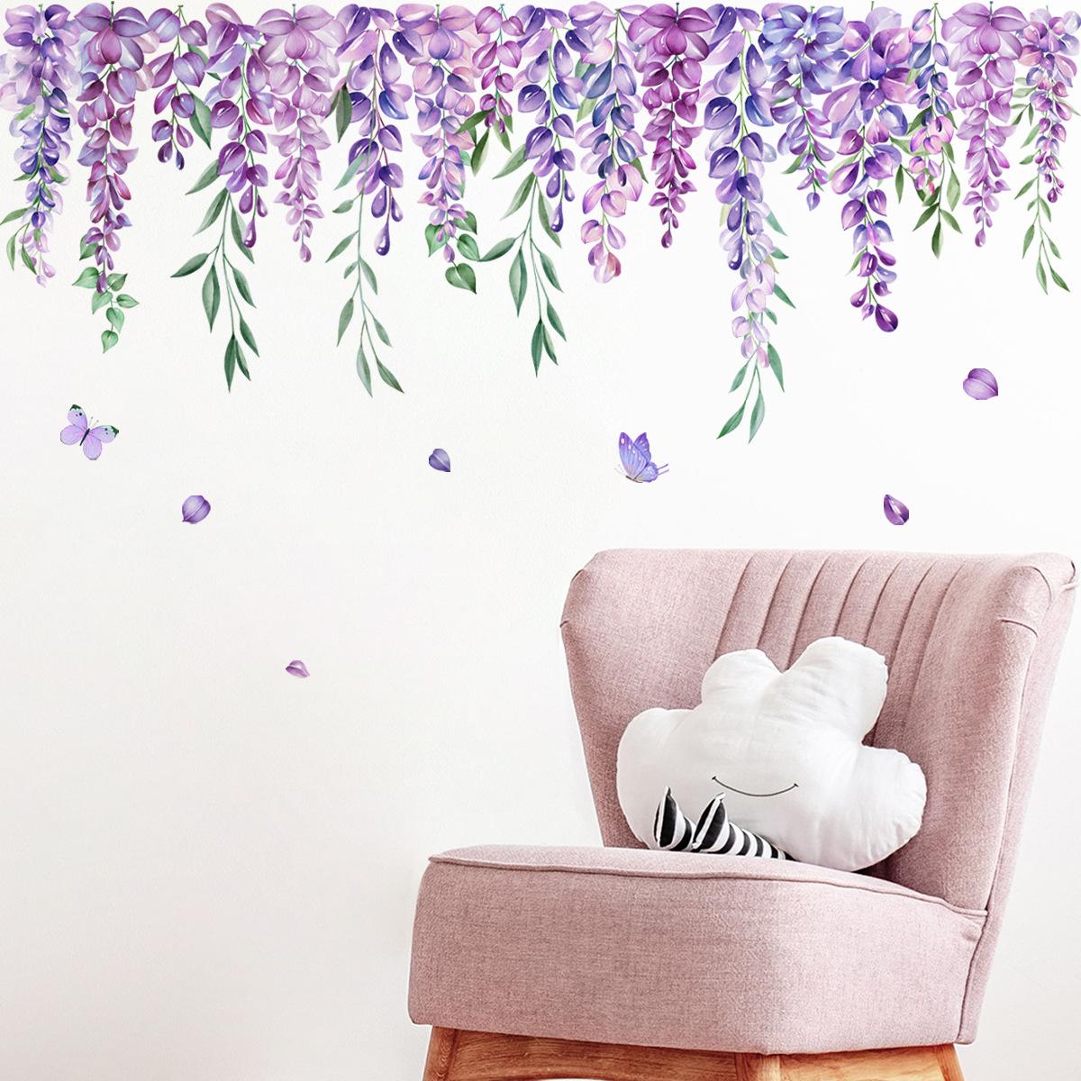 MS8507-NH Planta Flor Lavanda Pegatinas de Pared Creativas Pared de Fondo Sala de Estar Dormitorio Pared Pegatinas de Pared Decorativas Simples