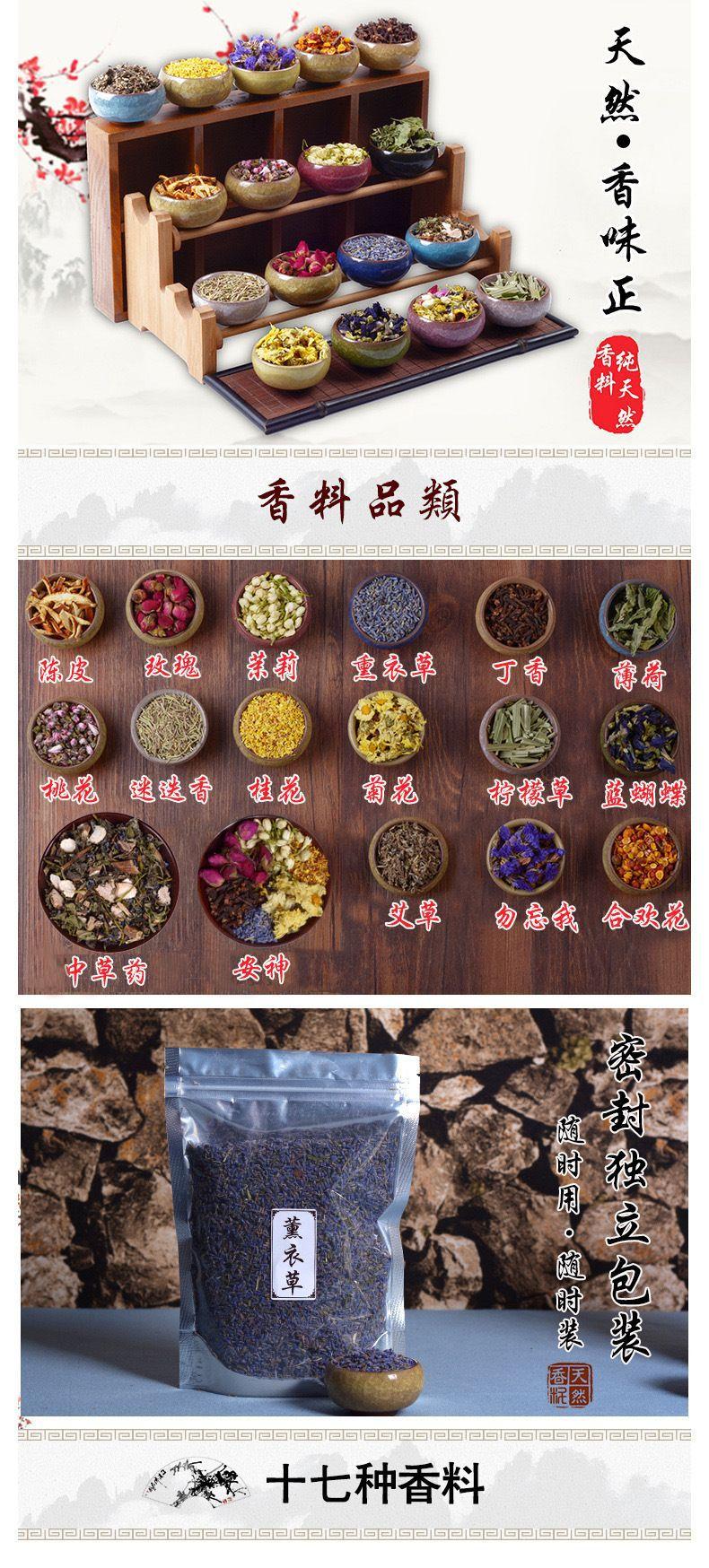 100g lavender, 100g dried rose flowers, 100 grams of cloves, 100g dried jasmine flowers, 100 grams of mugwort ...