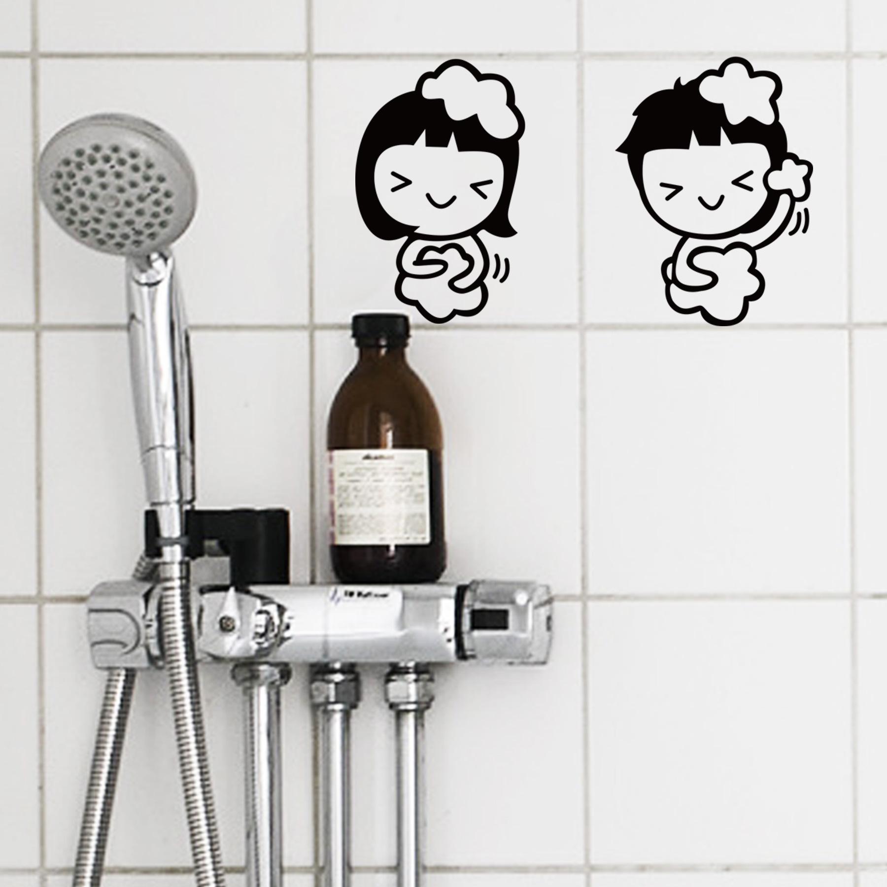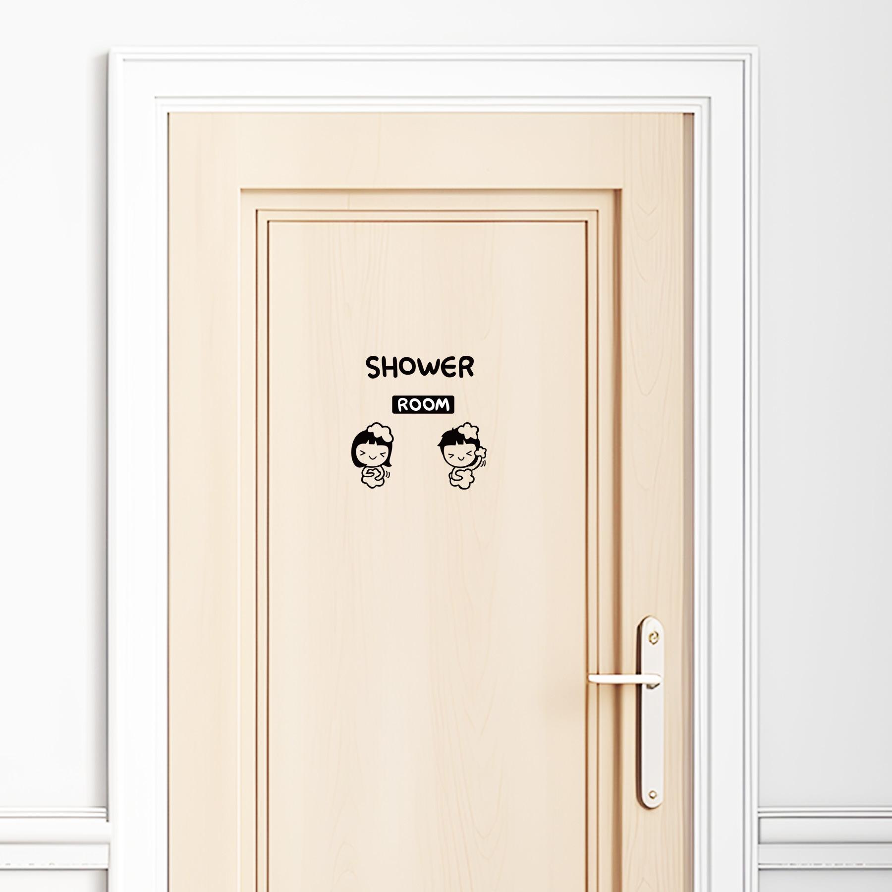 Baño infantil con mampara extraíble para baño, inodoro, fondo de casa, adhesivo decorativo de pared PH2577