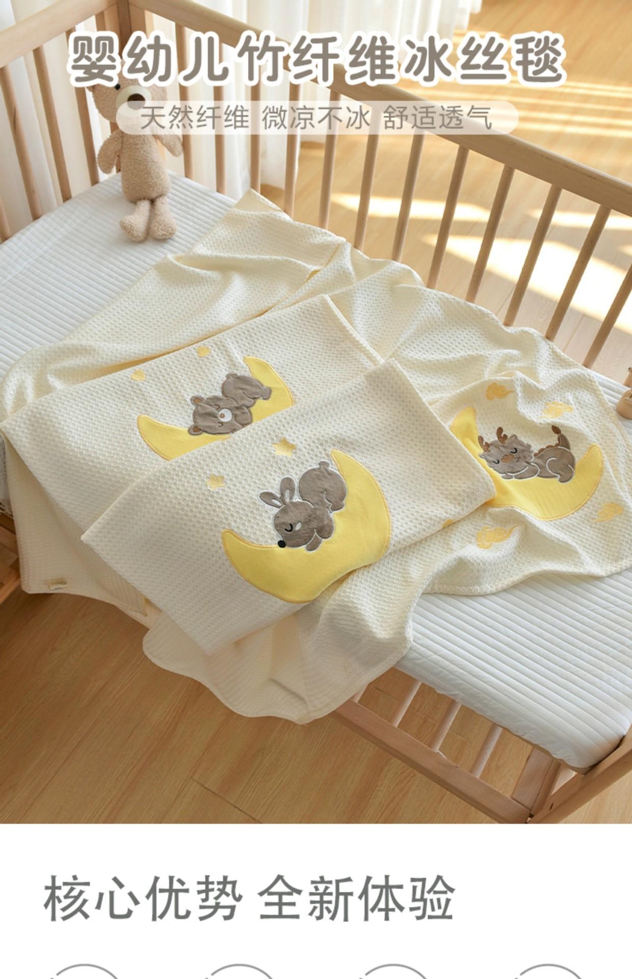 Manta de seda helada de fibra de bambú para bebés Hecho de fibra de bambú natural, se siente naturalmente fresco y evita las erupciones. Fresco pero no helado, tacto suave, más agradable para la piel y cómodo. Dobladillo y costuras exquisitos, sin rozaduras en la piel, sin temor al lavado a máquina. Absorbe la humedad y es transpirable, antibacteriano y antiácaros, bordado exquisito, calidad Clase A.