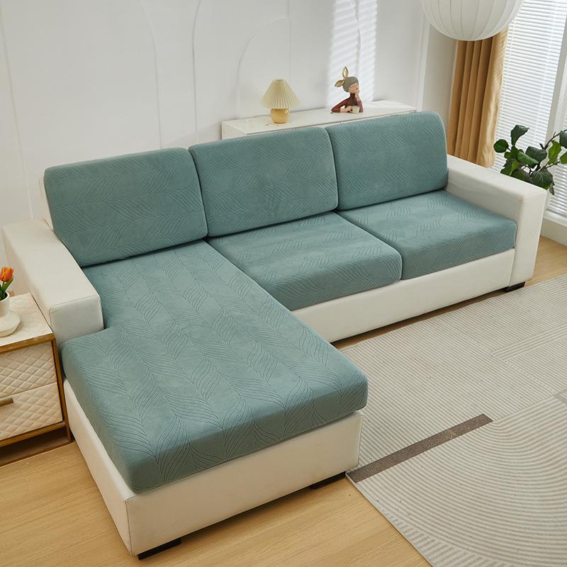 Funda de sofá elástica de jacquard de vellón grueso, funda de cojín de color puro con todo incluido, funda de sofá
