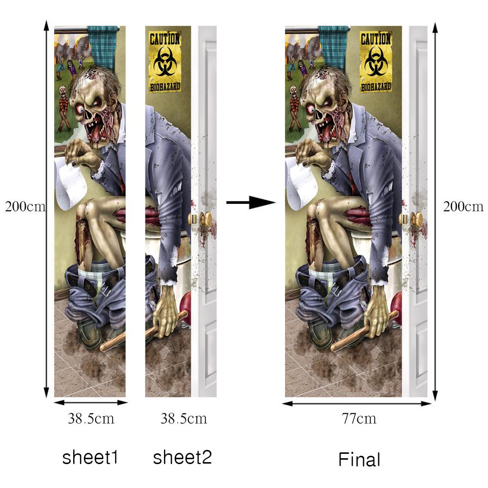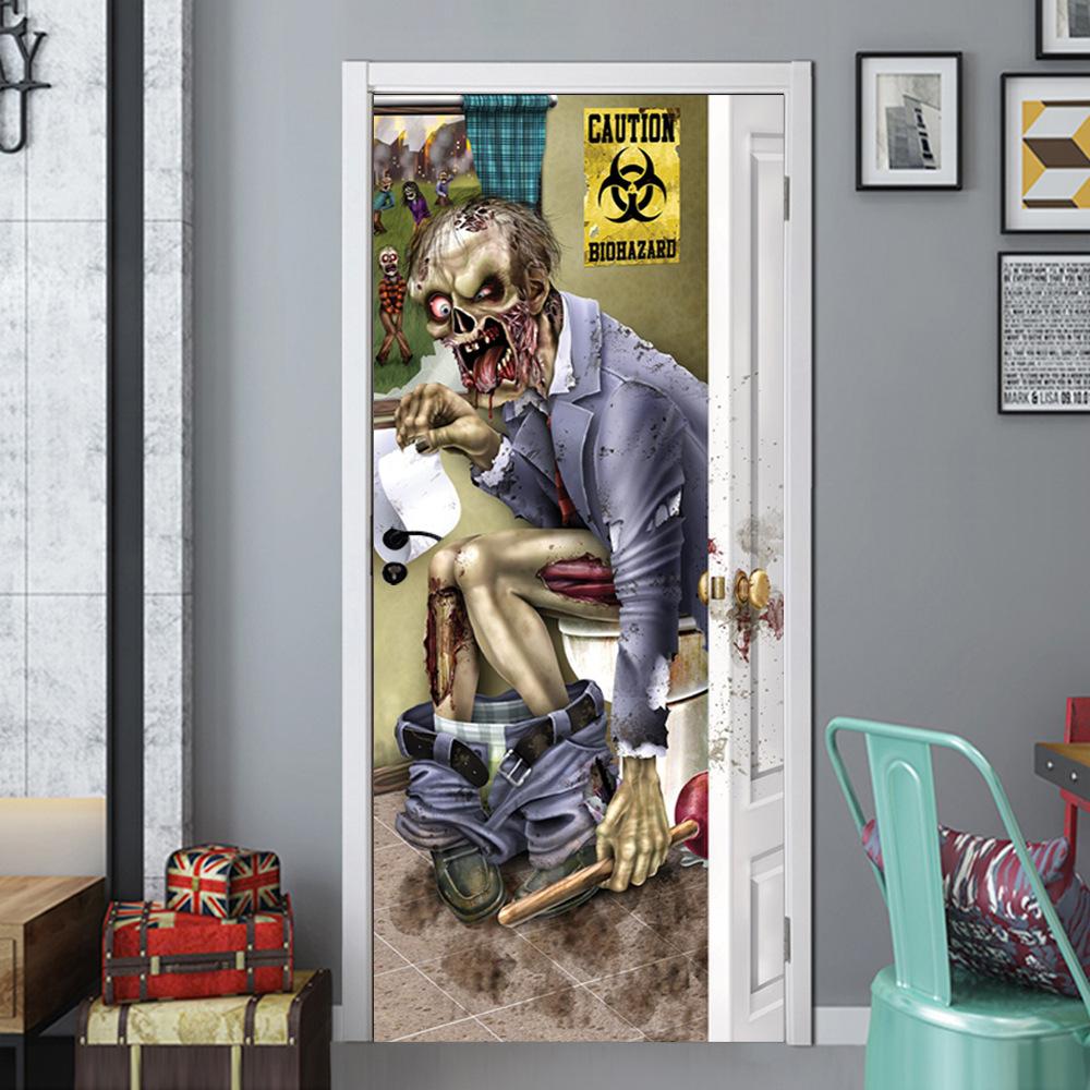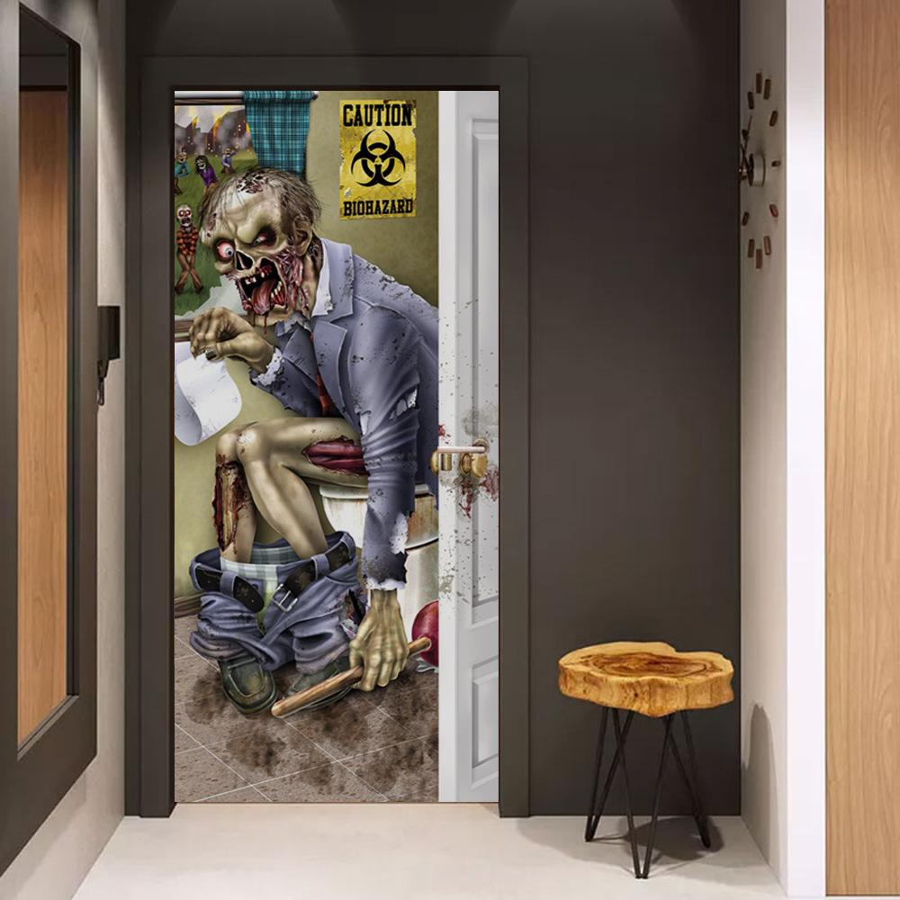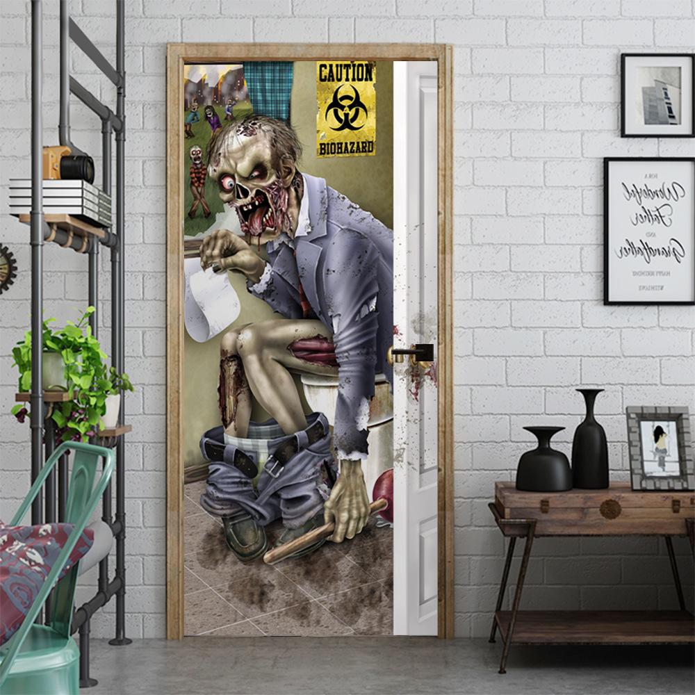 MT 800000 - Puerta de zombi para el día santo, pegatinas 3D creativas para puerta, pegatinas de madera personalizadas para decoración del hogar, pegatinas de pared para renovación