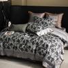 Edredón de algodón puro de 100 hilos de fibra larga de cuatro piezas con estampado digital de flores retro, ropa de cama de 1,8 m