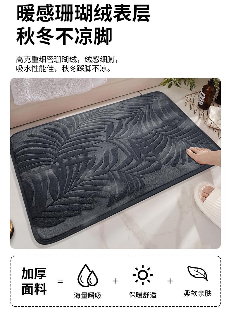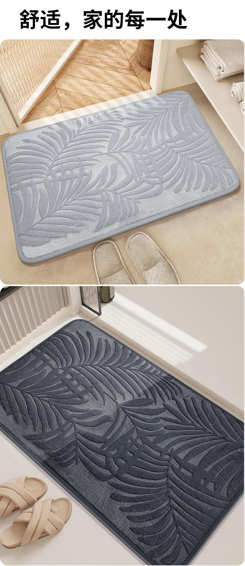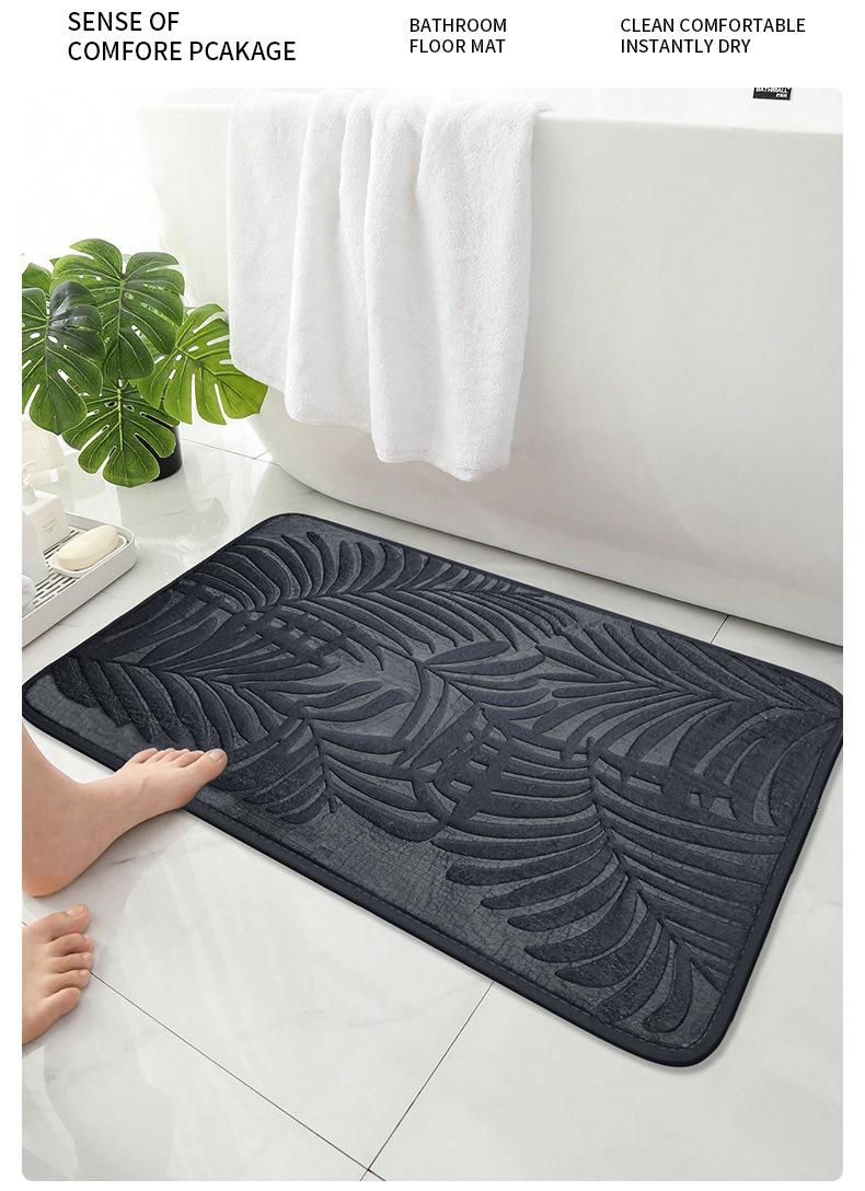 Alfombra de baño de espuma viscoelástica con diseño de hojas transfronterizas, absorbente y antideslizante, para sala de estar, dormitorio, cocina y hogar