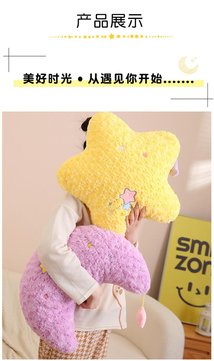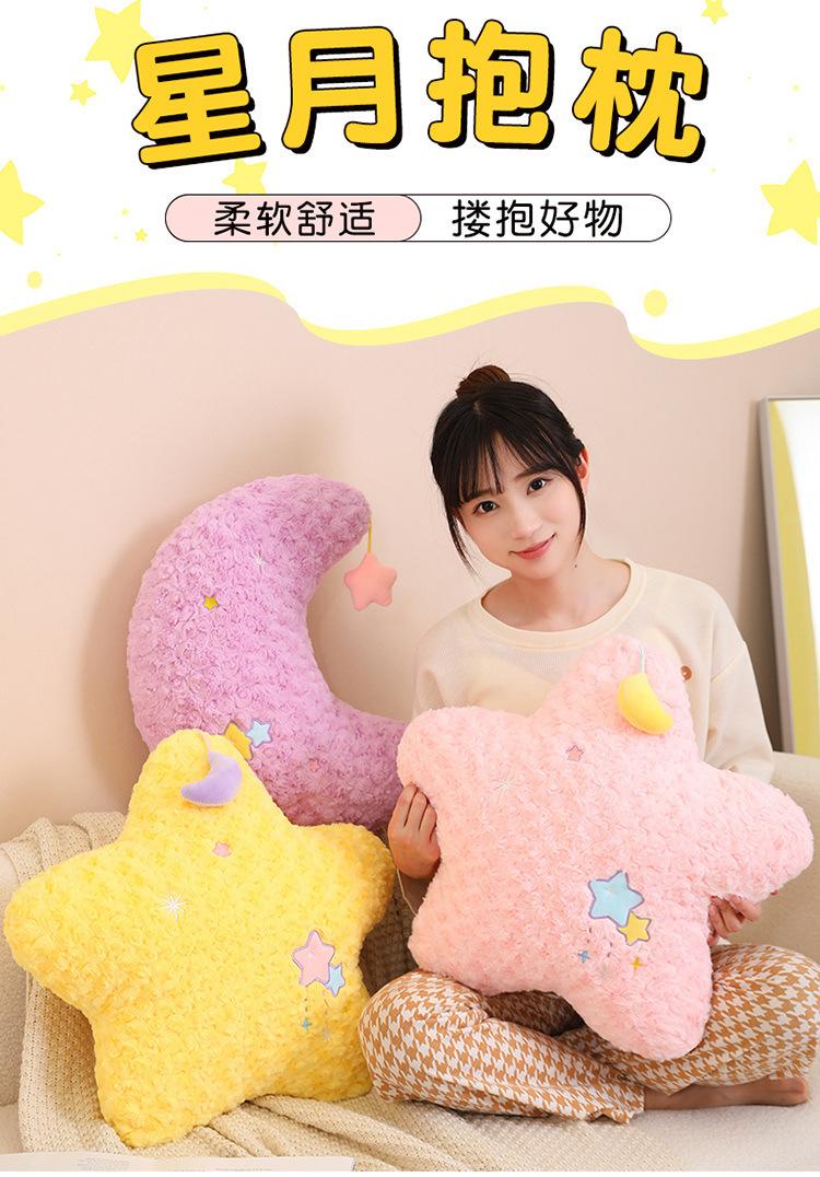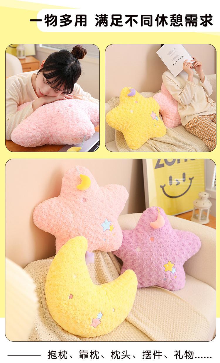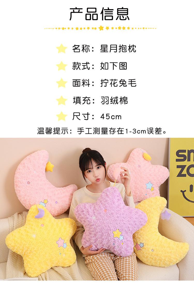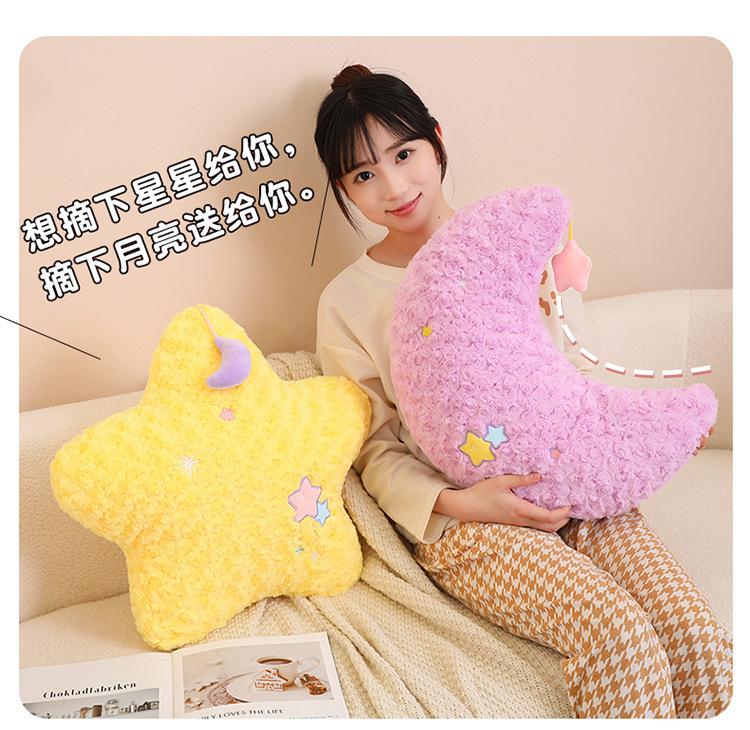 Lindo Cojín de Peluche de Luna Estrella para Niñas para Dormir Sofá Sala de Estar Cama Cojín de Cintura para Coche Decoración Suave