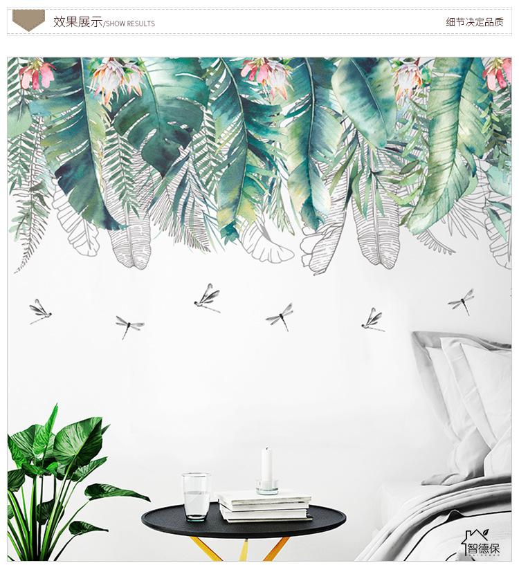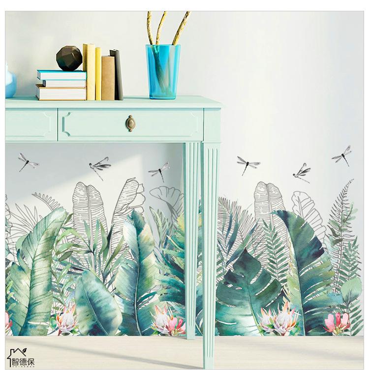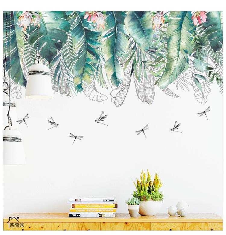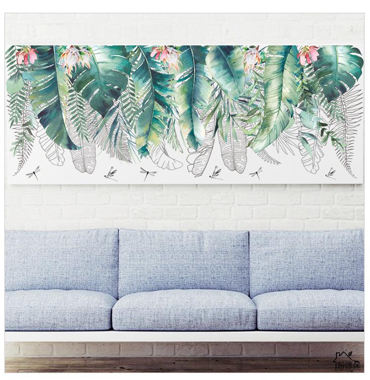 Adhesivos de Pared Hojas Tropicales Artístico Fresco Sala de Estar Dormitorio Adhesivos Nórdicos Planta Línea Zócalo Decoración Esquina Superior Quyou