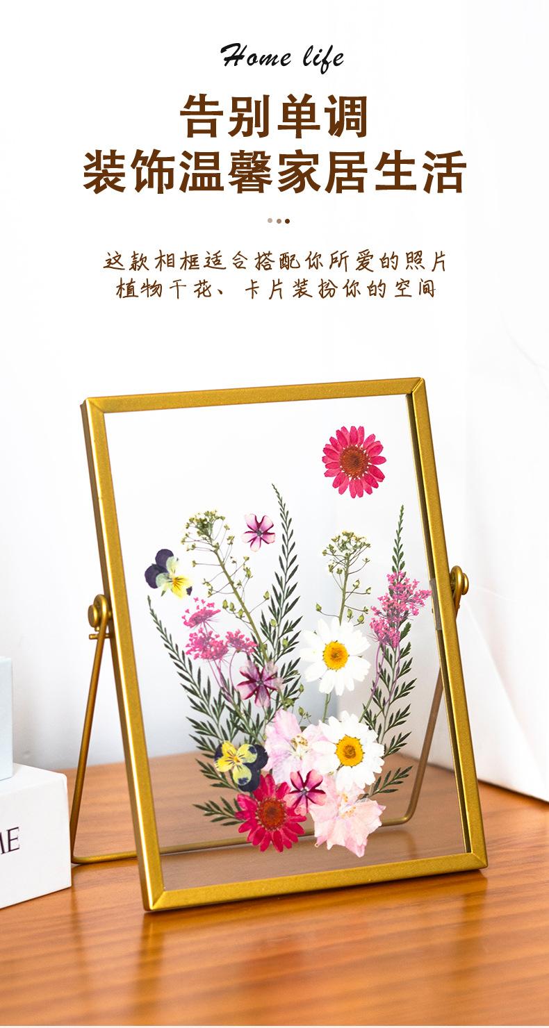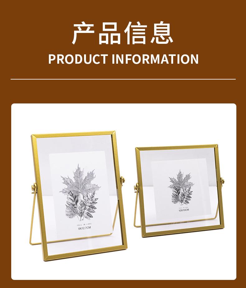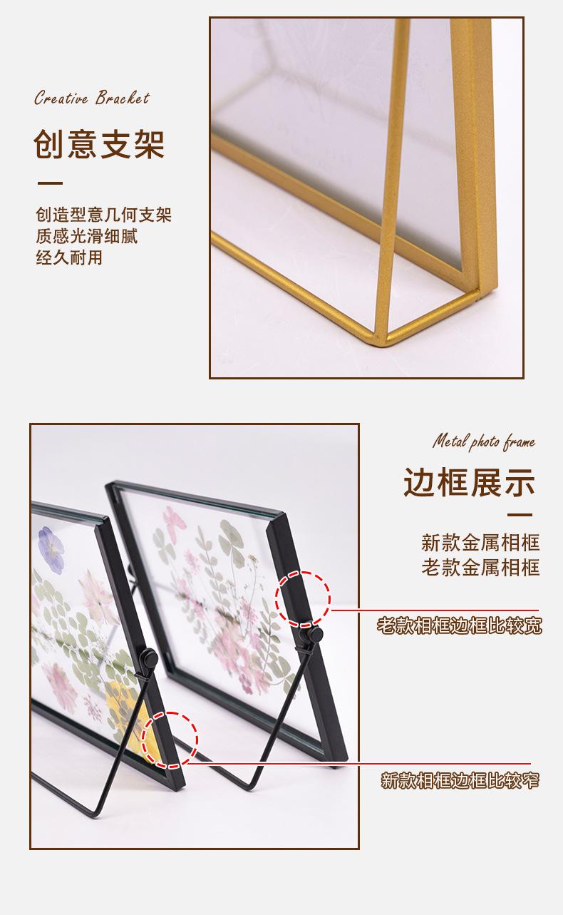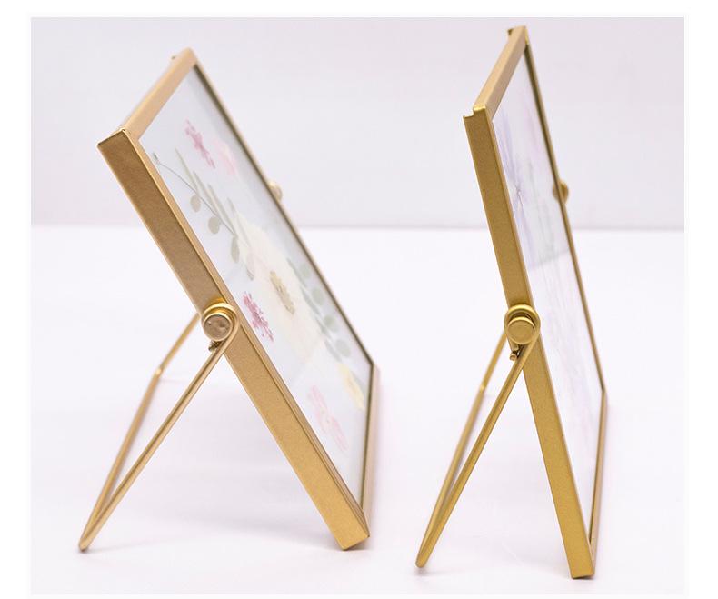 Marco de fotos de vidrio de doble cara de metal nórdico al por mayor de fábrica, marco de fotos en relieve DIY, marco de muestra creativo, juego de mesa de regalo
