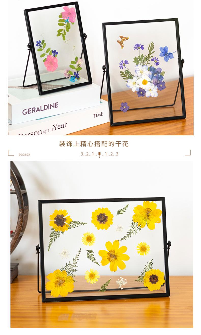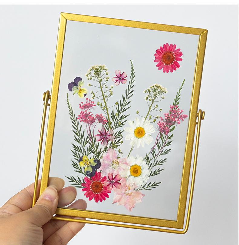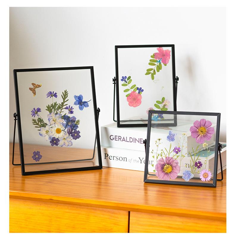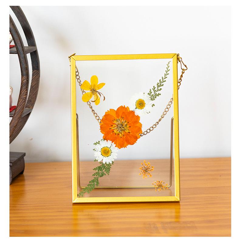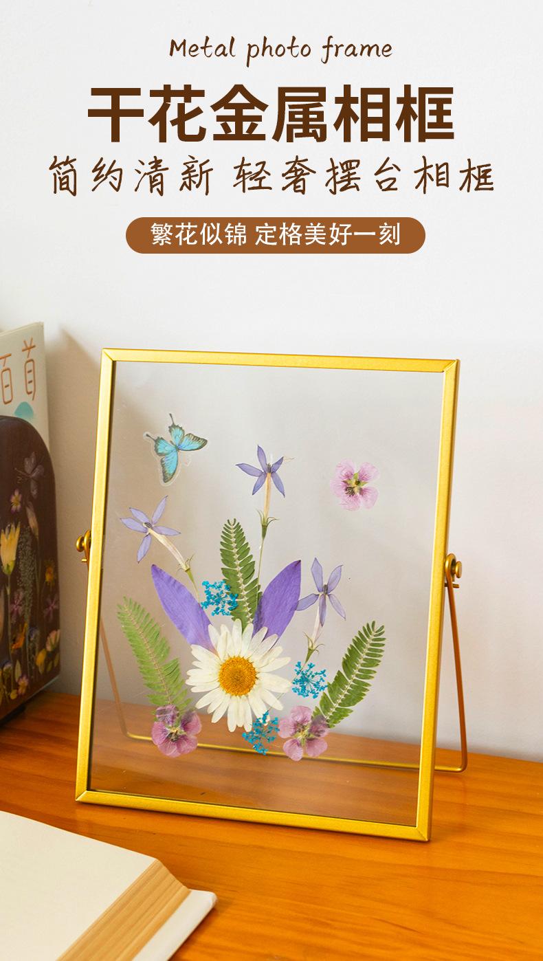 Marco de fotos de vidrio de doble cara de metal nórdico al por mayor de fábrica, marco de fotos en relieve DIY, marco de muestra creativo, juego de mesa de regalo