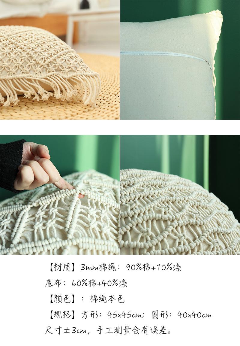 Funda de almohada redonda trenzada de cuerda de algodón-I 40x40 de aproximadamente 290 g/pieza, cantidad de embalaje: 60 piezas/caja tamaño de la caja: 45x45x40cm