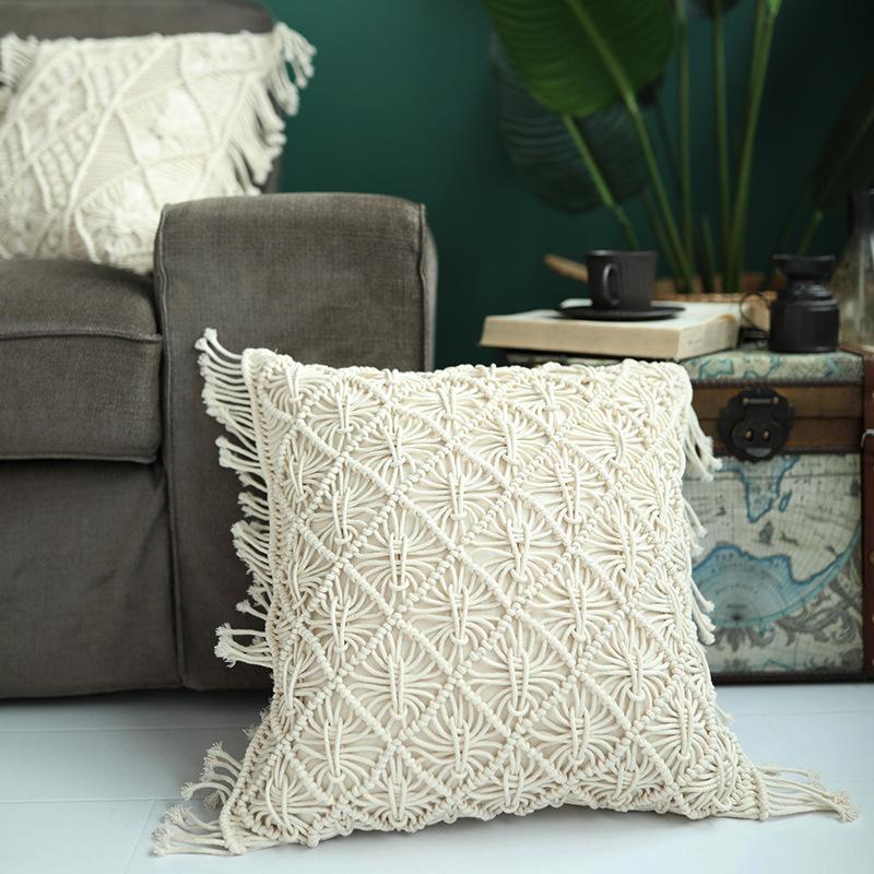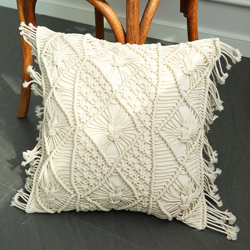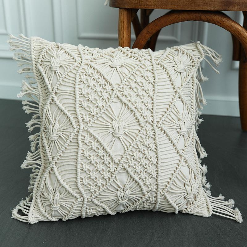 Funda de almohada trenzada de cuerda de algodón-A 45x45 de aproximadamente 372g/pieza, cantidad de embalaje: 60 piezas/caja, tamaño de la caja: 50x50x40cm