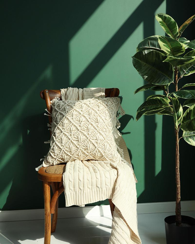 Funda de almohada trenzada de cuerda de algodón- F 45x45 aproximadamente 370g/pieza, cantidad de embalaje: 60 piezas/caja, tamaño de la caja: 50x50x40cm
