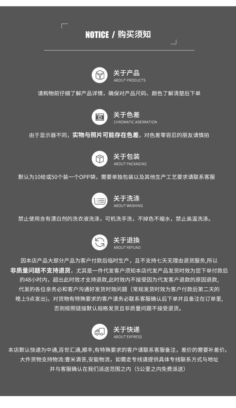 1. El pedido no incluye la etiqueta de lavado por defecto. Si necesita añadirla, consulte con atención al cliente.