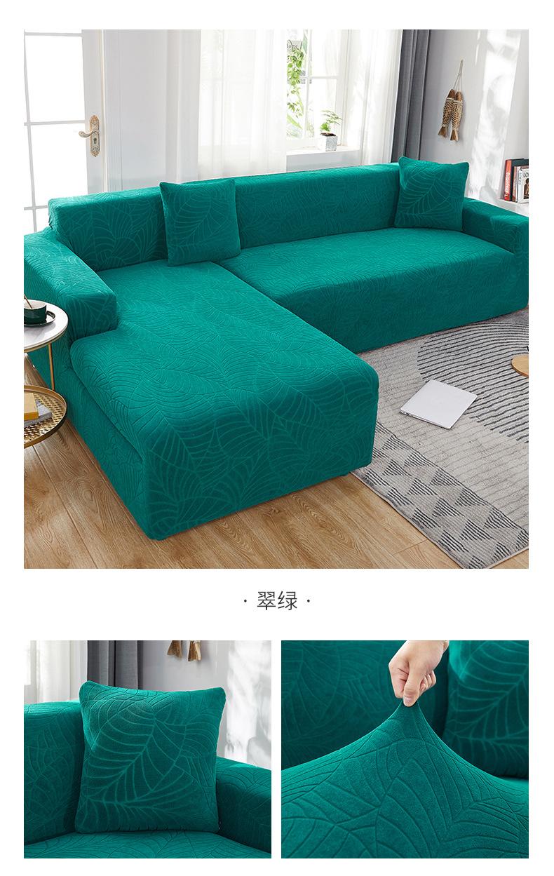 Grass green-waterproof jacquard big leaves-sofa cover, Emerald-Waterproof Jacquard Large Leaves-Sofa Cover, La...